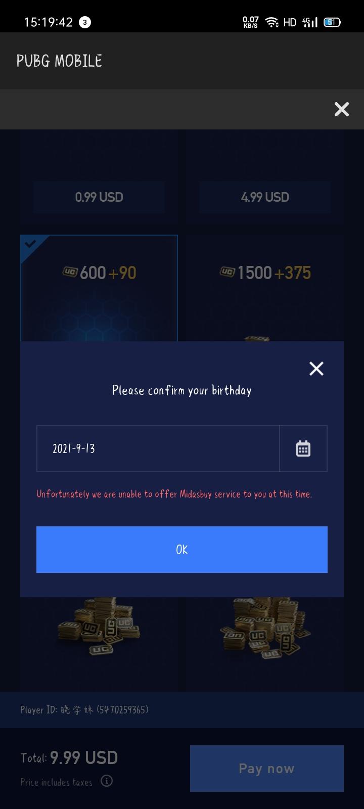 为什么我充值还显示:Unfortunately we are unable to offer Midasbuy service to you at this time.