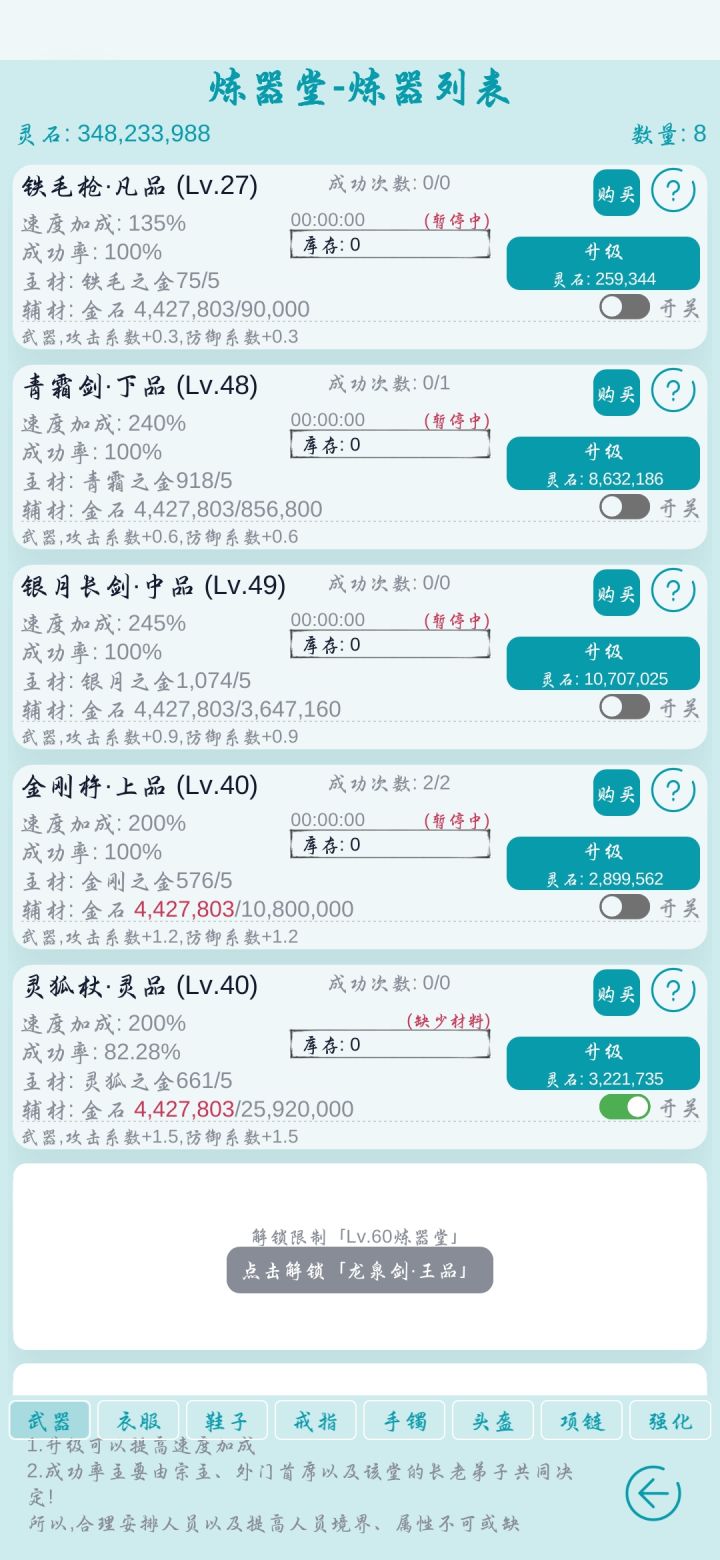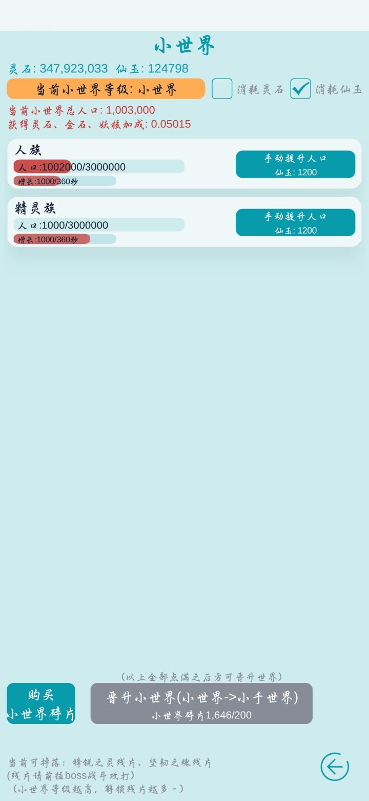 是bug还是官方可以设置,装备加成又不多,但是打造装备材料要用的金石多到怀疑人生。打下来山门也没用,小世界加成也没用,金石还是只有一点点。不是,修仙世界也有炼器宗门啊,这还怎么炼器。炼丹弟子连轴转,忙不过来,炼器弟子常年没事干,在休息。,官方赶紧改改吧。