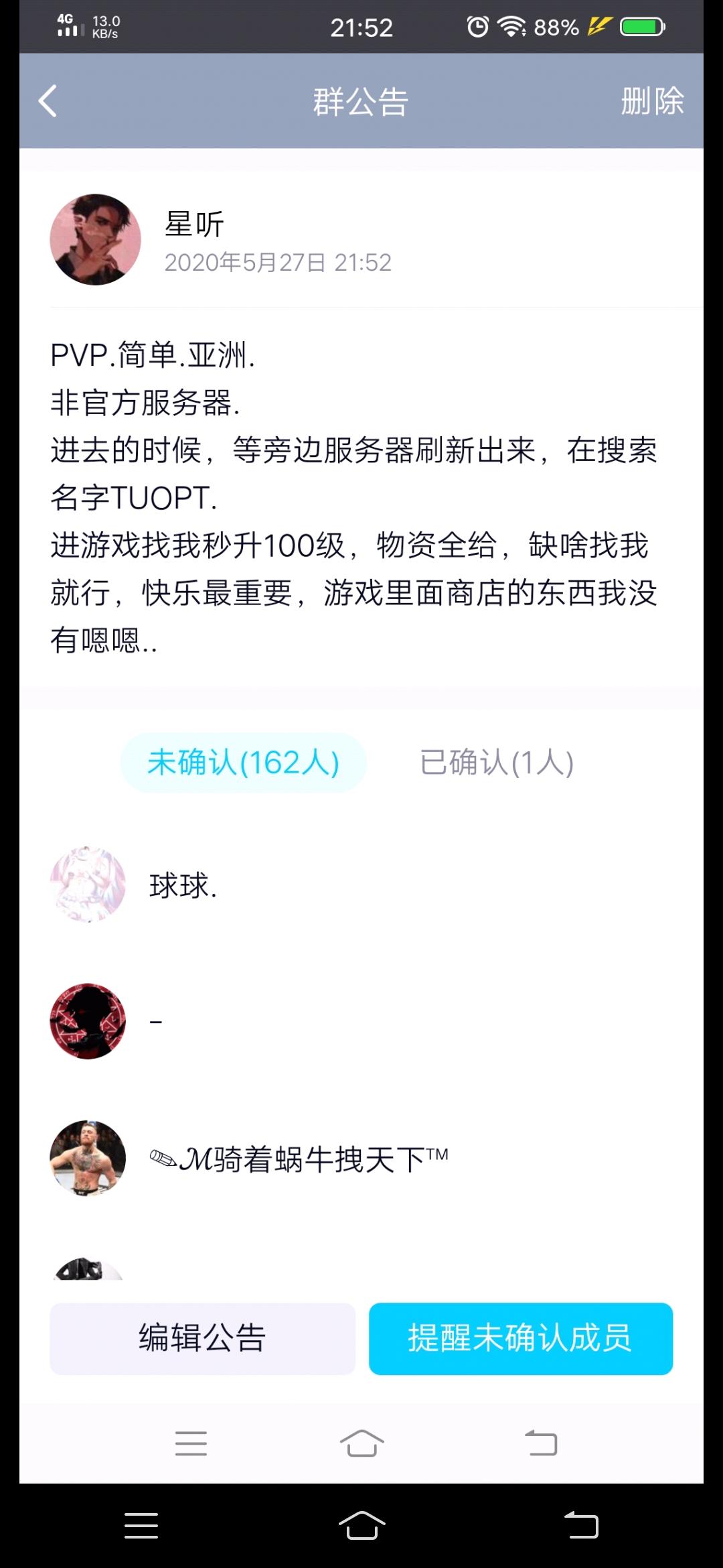 欢迎狂战分子 和娱乐玩家 pvx区域制放最狠的话 挨最毒的打 原则就一条 除了辅助家 其他随便打管理无权限 不参与玩家争论 公平游戏 娱乐游戏 适度游戏招收一个 长期管理员 需押金 (每周都有福利) 有管理经验优先联系方式 看图 群里禁止吵架 禁止ghs 禁止广告 需要帮助直接找服主可收徒 可代开服务器 可解决各种疑难杂症