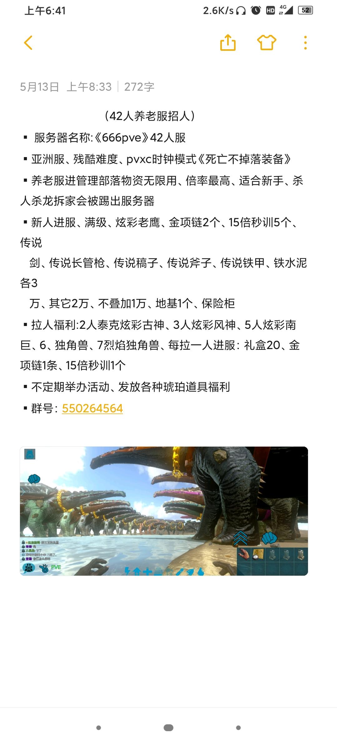 方舟生存进化手游新服招人 服务器信息 服务器china xht 中等模式死亡不掉落 服主不参与竞争,新人升级60,其他自己肝 平时pve周末pvp 游戏里大家都很友好,好相处,都会帮助新人,不定时举行活动。 服主会买礼物作为活动奖品,15倍秒训 黄金项圈 彩虹加特林等,积极参加活动也会发奖励哦😊 新服刚开不久欢迎方舟萌新,大佬养老😊 QQ群:1087213887 沙雕网友等你来😄