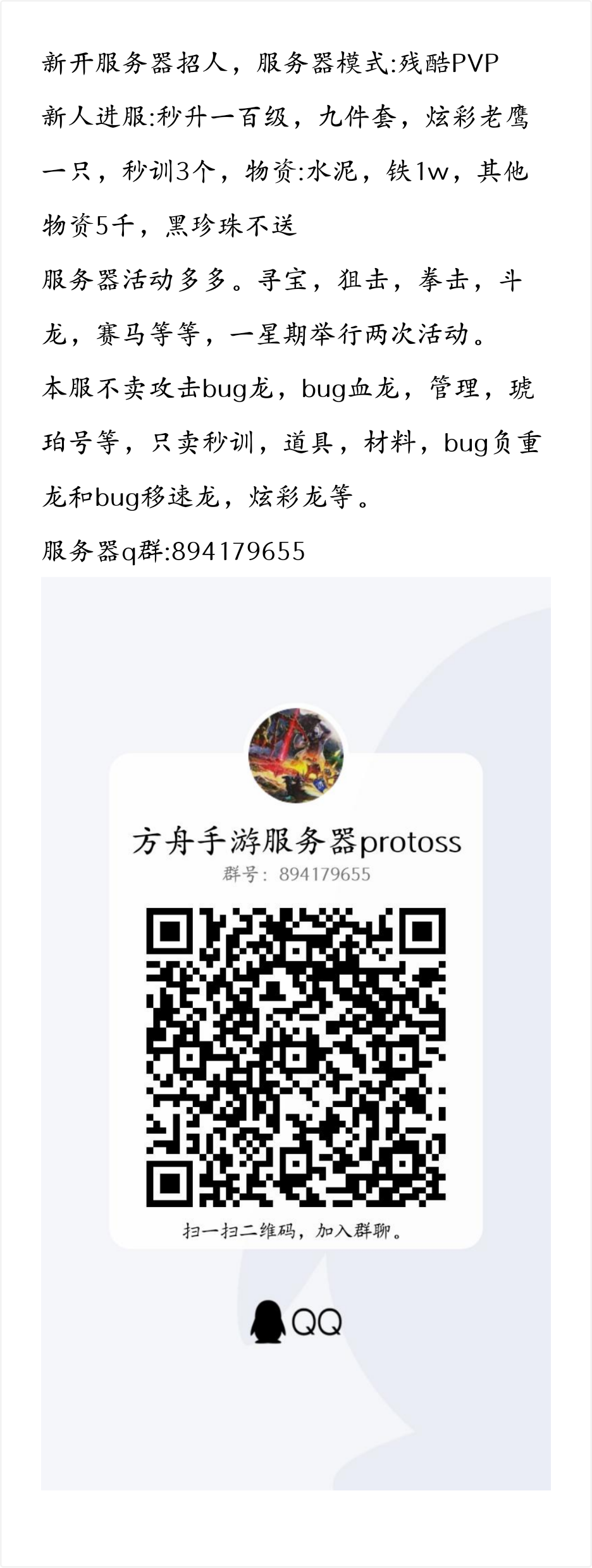 方舟12号新服开张,速来~休闲残酷dodo,50人优质服,最高倍率~新人进服满级,铁甲一套(不是极品,刚开服没💰)and采集装备一套(极品)and代步工具(老鹰or翼龙)起家送🌈,三人部落送工具🐉(千功甲龙,千功🐘,千功星尾兽,千功镰刀🐉,自选)~欢迎各位大佬萌新加入(都是萌新,大佬下手亲点😹)