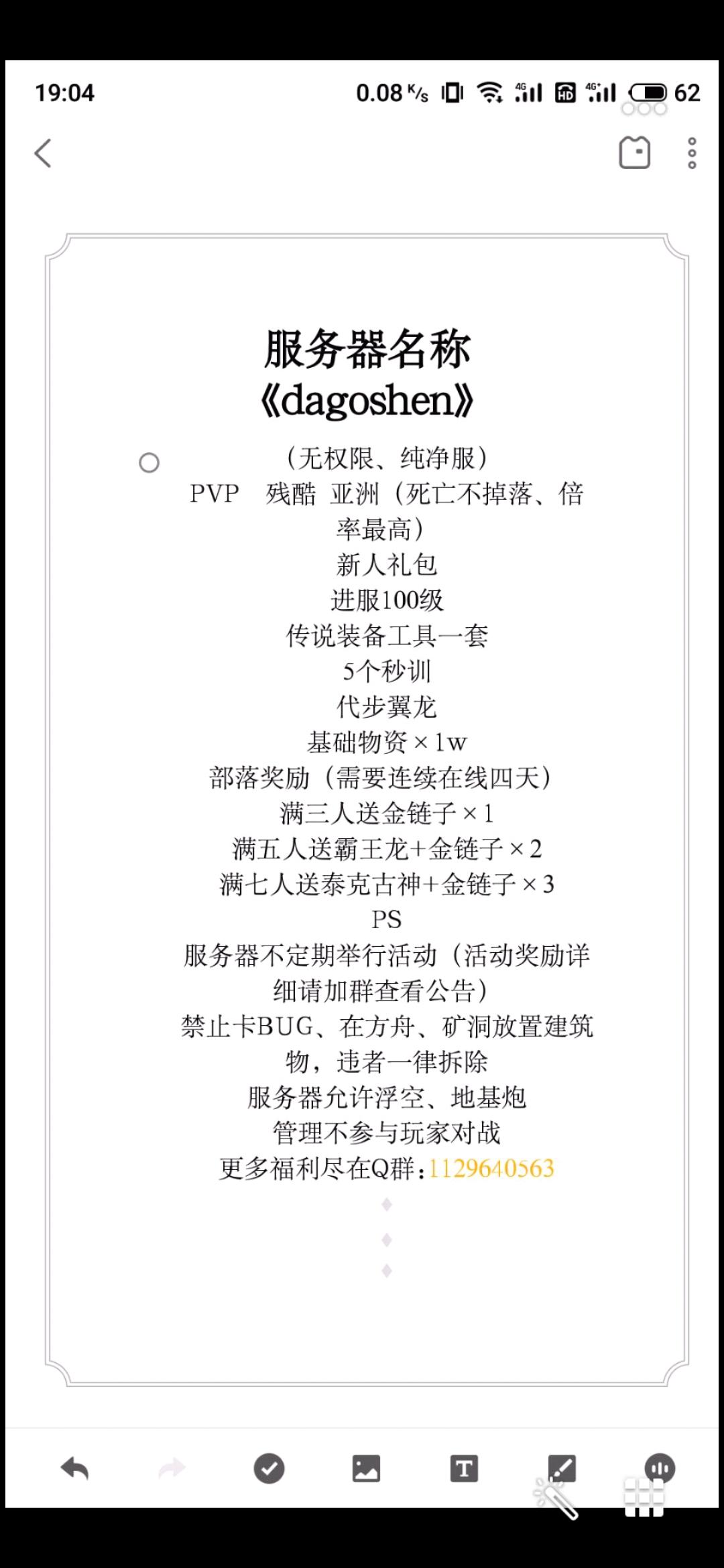 方舟私服招人服务器名称: laoyangQ0群聊, 599687999加群找管理领取新手物资群内有进游戏教程,可带萌新。模式PVP活动多,福利多,管理认真负责,不干涉,不参与玩家游玩。新手福利:1,等级福利: 100级2,装备福利传说九件套。3,物资两万五自选,板子减半,黑珍珠不给部落人数福利:部落人口达一人送老鹰一只(只限部落)达两人口送翼龙一只。五人口送悬崖平台3个,