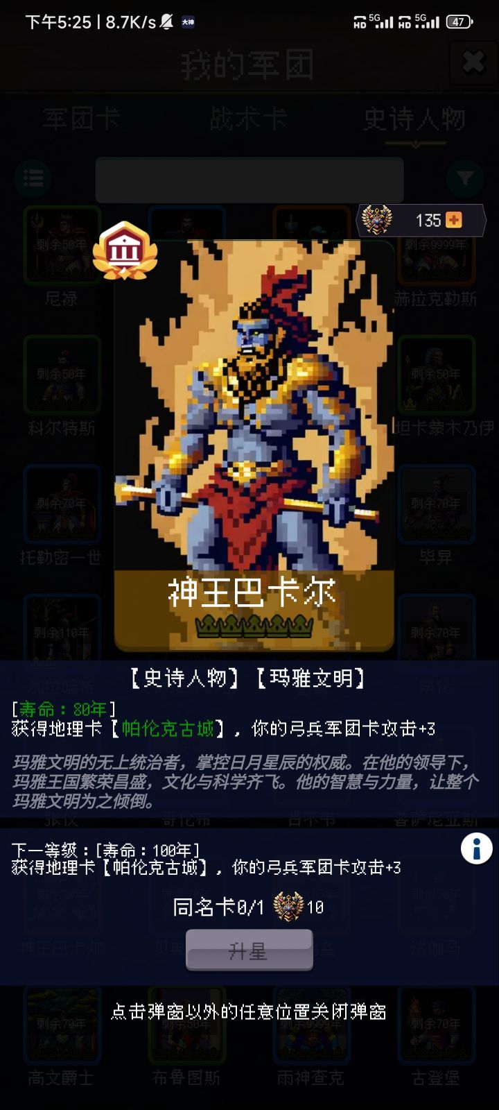 氪了女武神和斯巴达。选的秦,古埃及和斯巴达卡包。三百年之后,每个十年都是差不多的轮回了,重点在于取得尚武教育(每30年+4攻击),军事传统(进行学院事件时,骑兵爆伤+6%),军功爵(战斗事件时,攻击+1,暴击+1%),然后末尾数字是3的年份,固定让你选加属性的政策,选加速度。每十年的入侵,打亲帝国可以得到三星橙色秦铁骑,圣殿骑士好像打哪个都有几率给,很容易凑齐了五星亲铁骑和圣殿骑士,+一个0星
