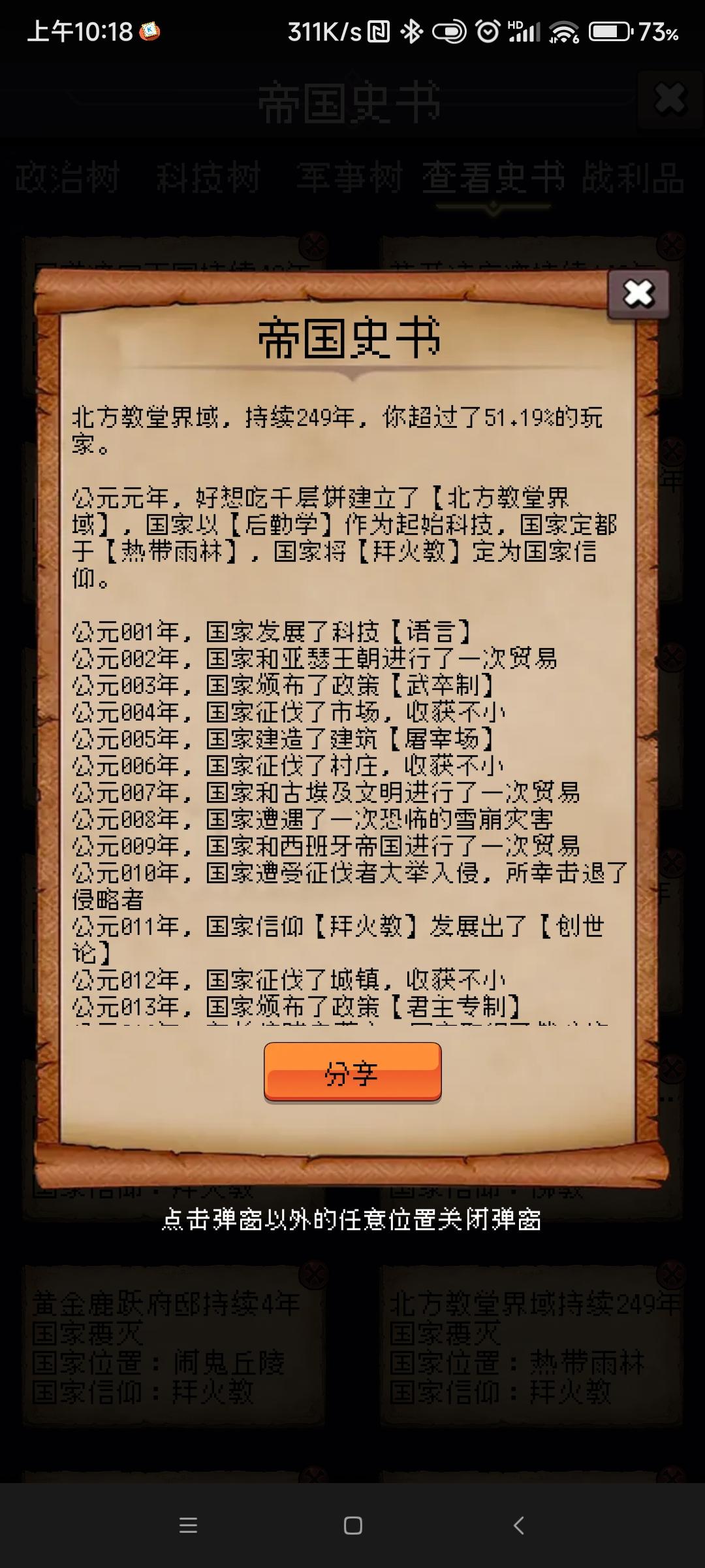 这个游戏有点肝,每天玩但是一直没有打破进度,一直卡在一个时间,好难受,现在卡在250年