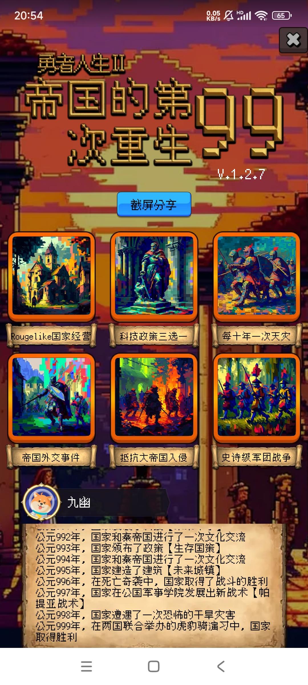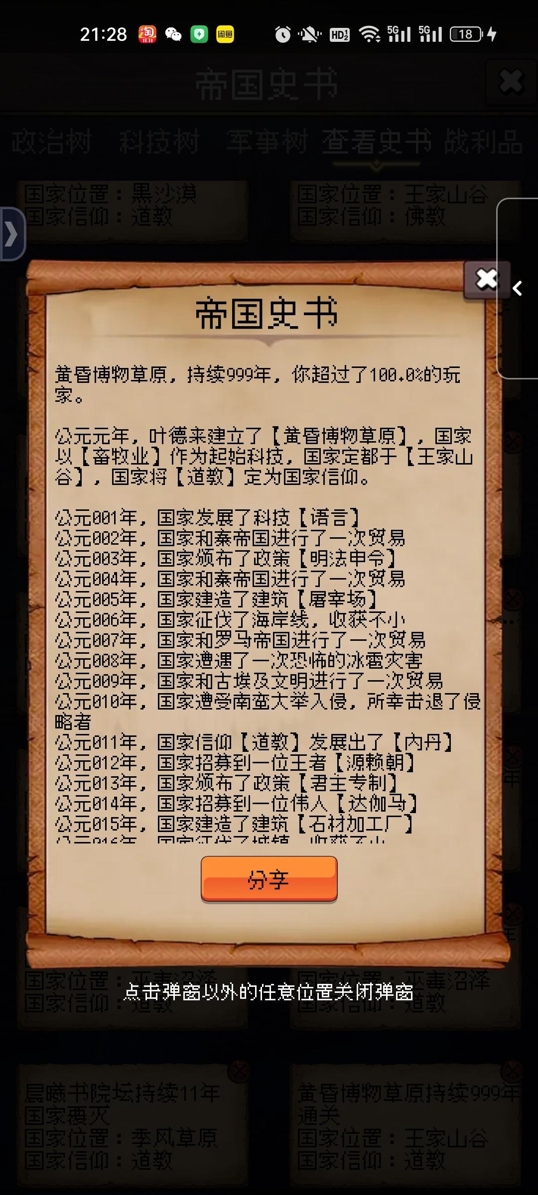 凤羽龙心塞,持续160年,你超过了44.51%的玩家。公元元年,准心建立了【凤羽龙心塞】,国家以【后勤学】作为起始科技,国家定都于【贫瘠低地】,国家将【佛教】定为国家信仰。公元001年,国家发展了科技【语言】公元002年,国家和秦帝国进行了一次贸易公元003年,国家颁布了政策【武卒制】公元004年,国家和罗马帝国进行了一次贸易公元005年,国家建造了建筑【屠宰场】公元006年,国家和