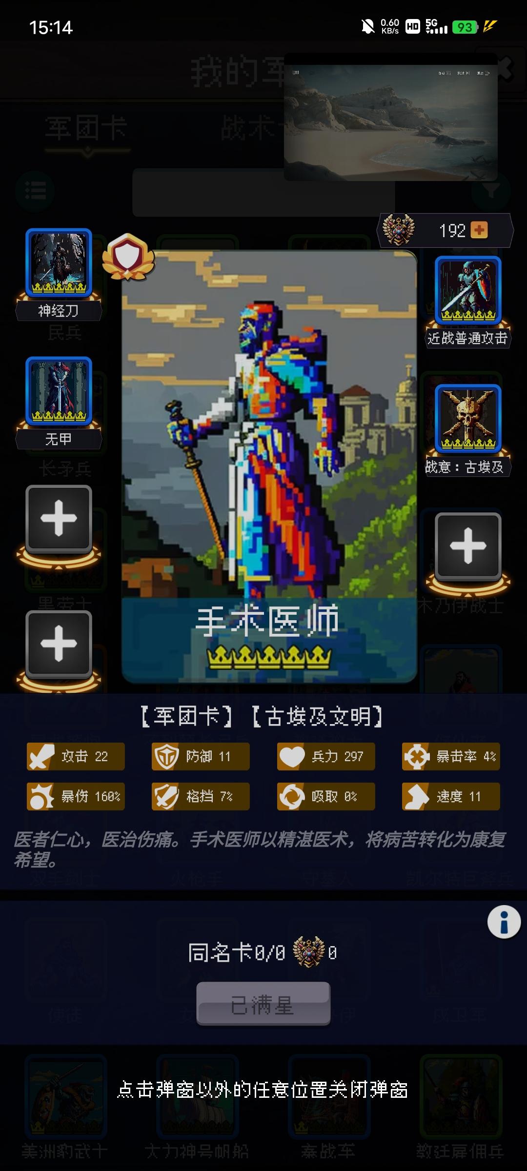 云卷歌剧坛,持续256年,你超过了51.71%的玩家。公元元年,宋扬建立了【云卷歌剧坛】,国家以【壁画】作为起始科技,国家定都于【新月半岛】,国家将【佛教】定为国家信仰。公元001年,国家发展了科技【语言】公元002年,国家征伐了市场,收获不小公元003年,国家颁布了政策【武卒制】公元004年,国家招募到一位贤者【圣方济各】公元005年,国家建造了建筑【屠宰场】公元006年,国家和秦