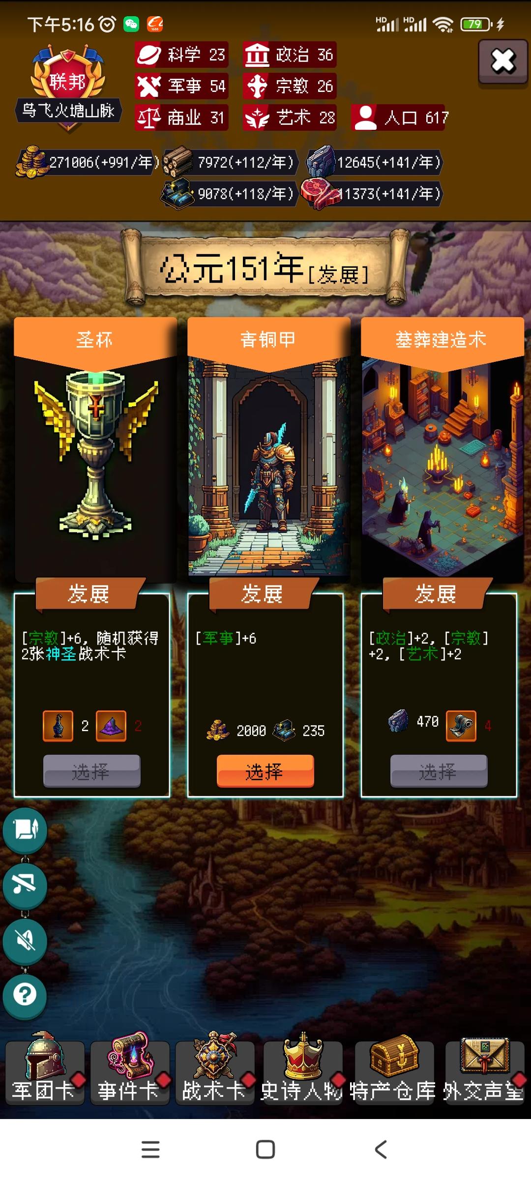 圣杯有可能拿到拉的烈焰和三位一体奇观古斯巴达城有几率给诸葛亮,还是很给力,直接给了维京和万里长城