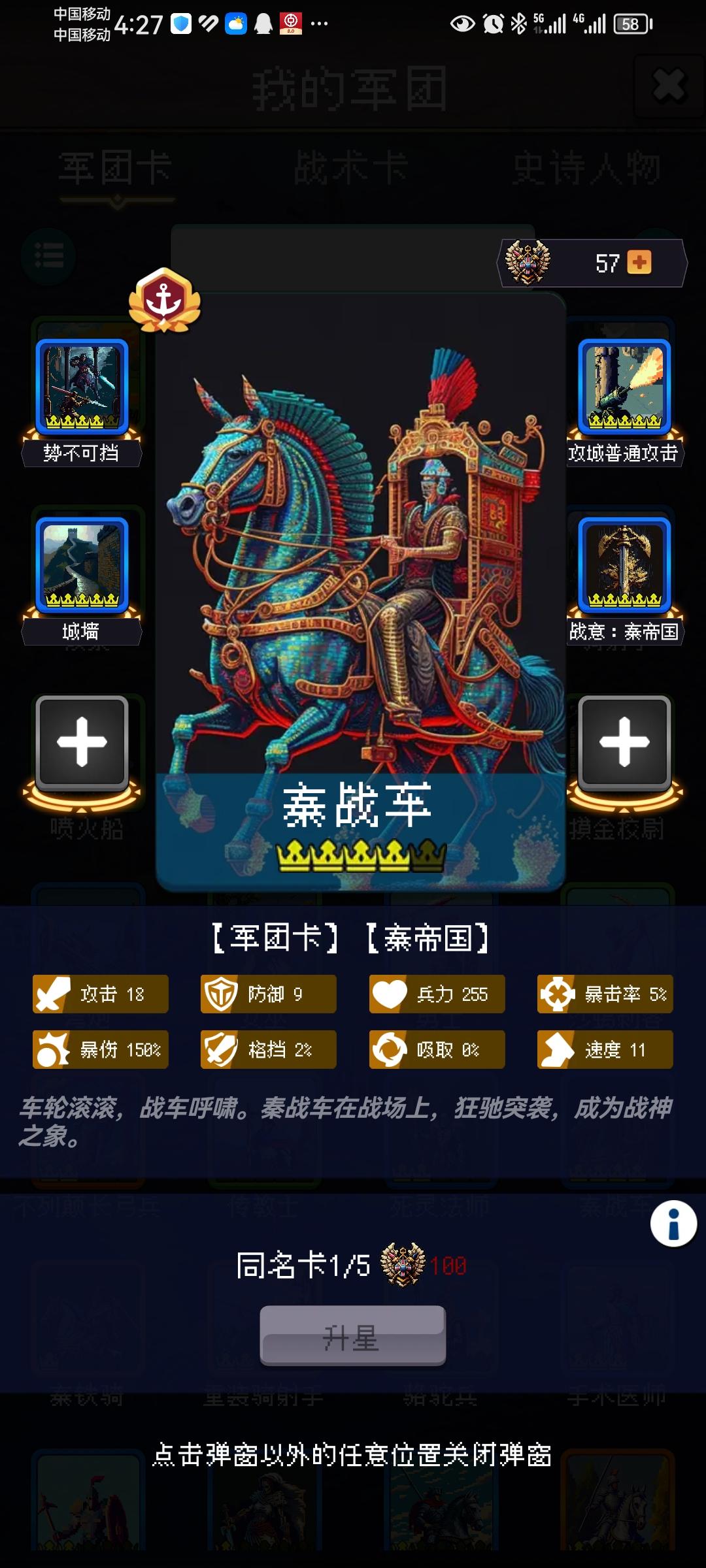 秦战车是一张平民高星白送卡,胜在星级压制但技能有点弱