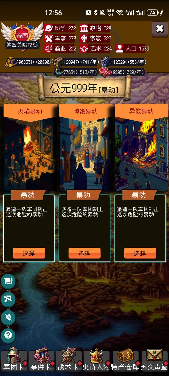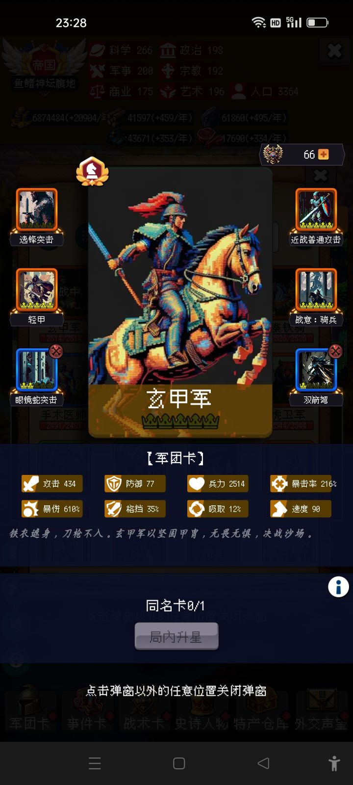 当有了诸葛亮后,刷开局要刷很久,最低刷远交近攻加军功爵。上限最高应该是刷诸葛套娃。不过开局只要刷出军功爵加远交近攻,骑兵流应该就可以打到999。但是,我现在还没有胡狼围攻,要是局内运气不好,刷不到胡狼围攻会非常难受。
