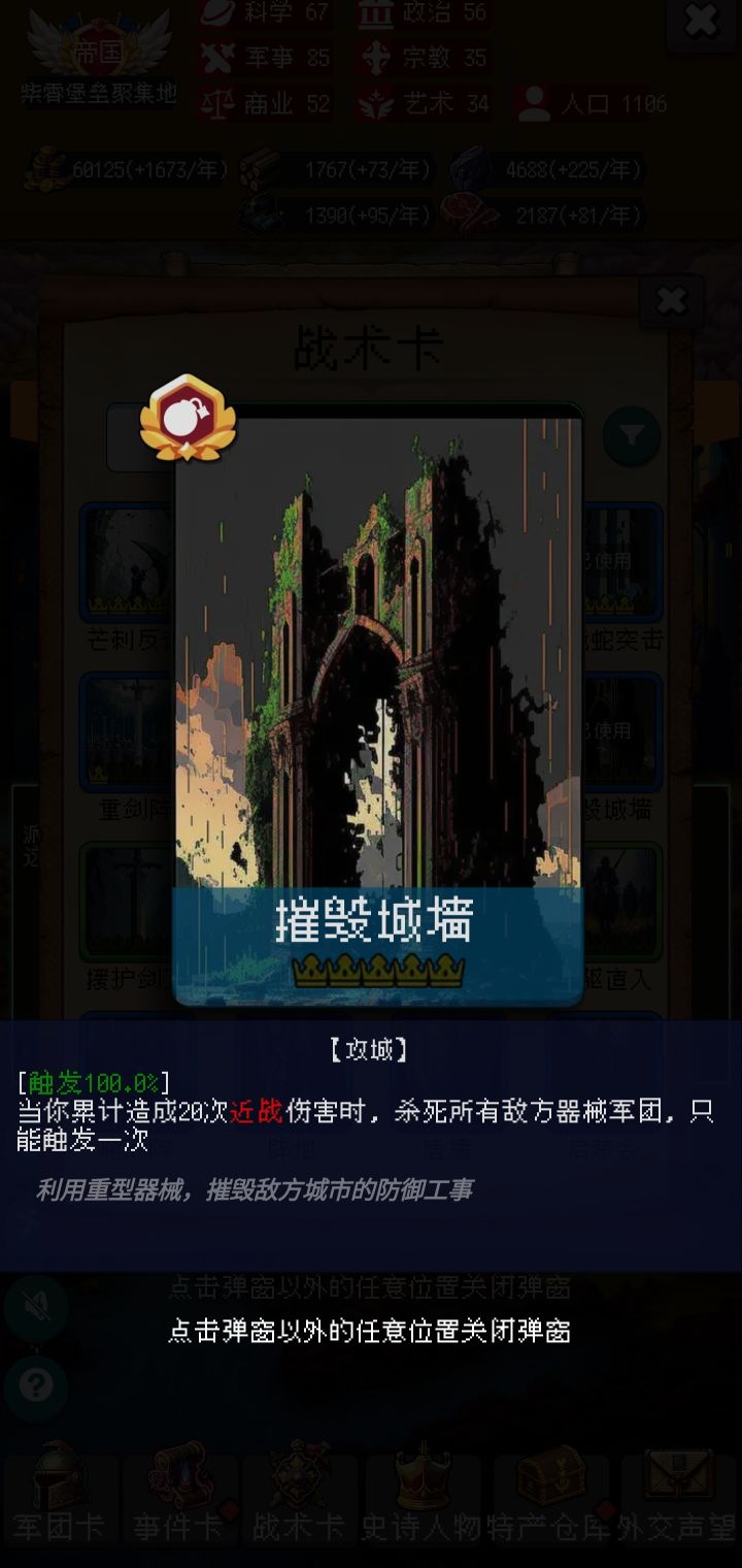 用轻甲骑兵携带战术卡《摧毁城墙》都打40回合了,还没触发,什么鬼?