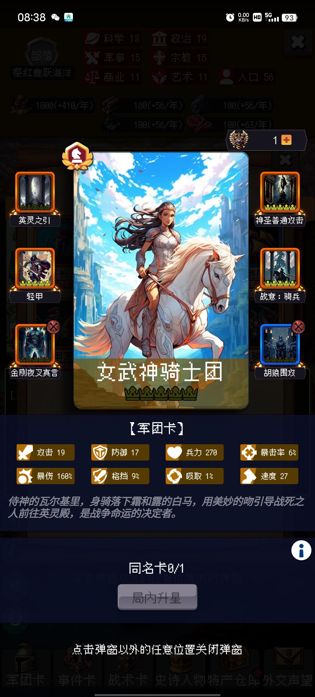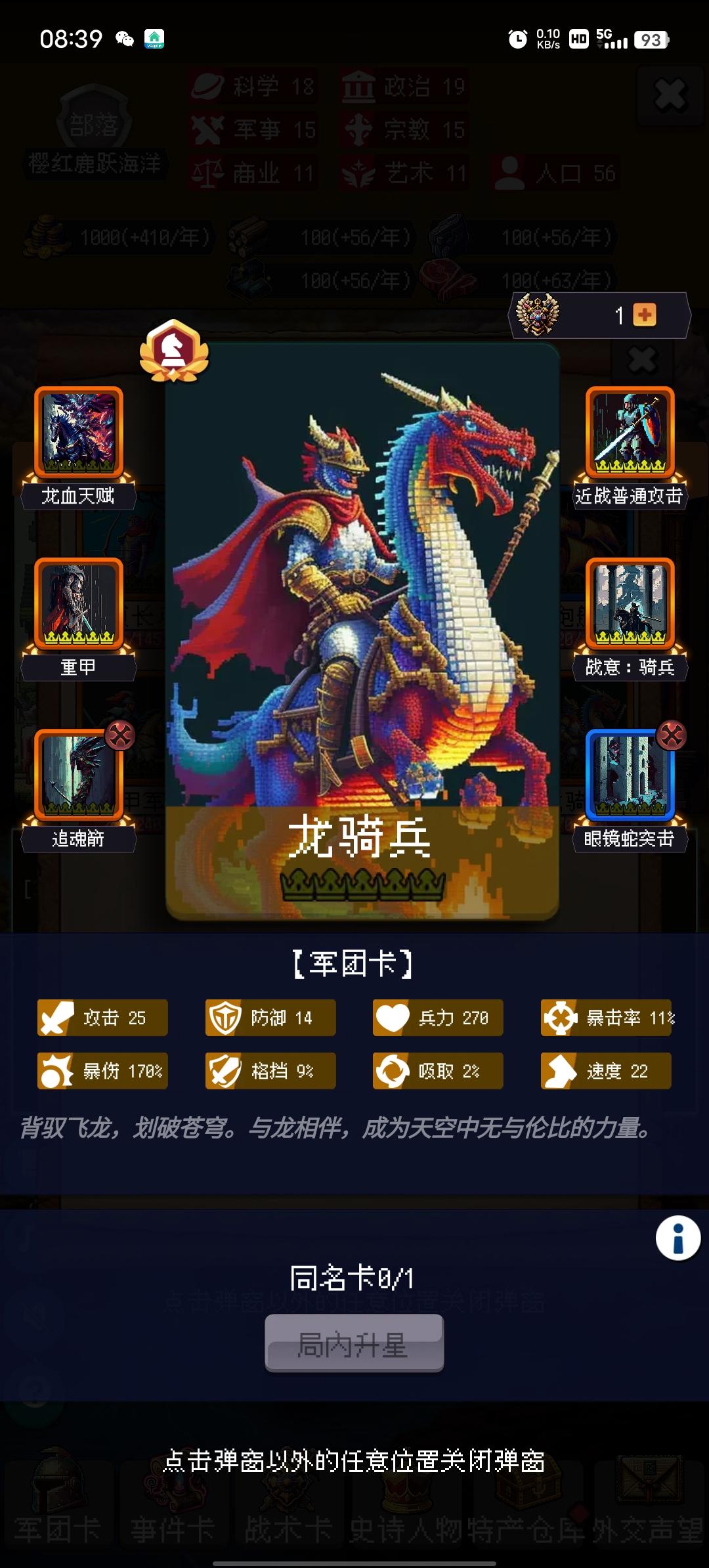 鸽羽石桥堡垒,持续320年,你超过了0.0%的玩家。公元元年,这只猫有点胖!建立了【鸽羽石桥堡垒】,国家以【壁画】作为起始科技,国家定都于【热带雨林】,国家将【伊斯兰教】定为国家信仰。公元001年,国家发展了科技【语言】公元002年,国家招募到一位贤者【圣方济各】公元003年,国家颁布了政策【明法申令】公元004年,国家和古埃及文明进行了一次贸易公元005年,国家建造了建筑【帐篷】公