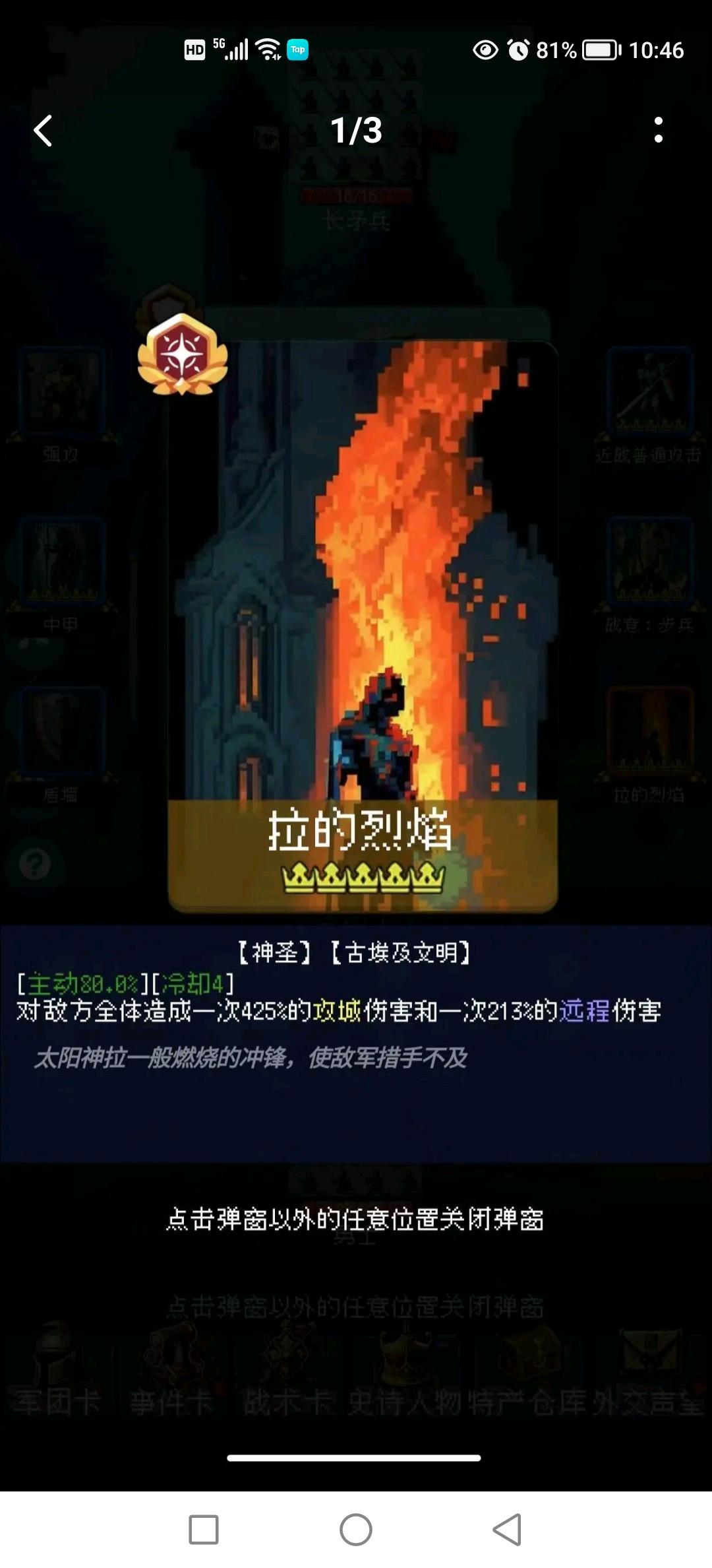 300年之后全是五星橙卡,我这只有一星橙卡,速度还叠不上去,会会敌方先手。被按着打呀云卷神坛大陆,持续310年,你超过了55.77%的玩家。公元元年,爱哭爱闹迷糊娃建立了【云卷神坛大陆】,国家以【轮子】作为起始科技,国家定都于【王家山谷】,国家将【伊斯兰教】定为国家信仰。公元001年,国家发展了科技【语言】公元002年,国家和古埃及文明进行了一次贸易公元003年,国家颁布了