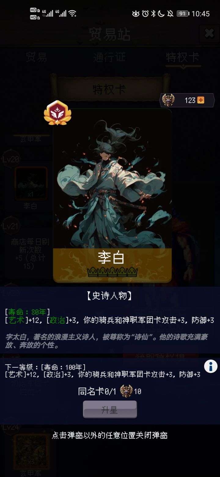 游戏人物列传之——李白李白(701年—762年12月),字太白,号青莲居士,又号“谪仙人”,唐代伟大的浪漫主义诗人,被后人誉为“诗仙”,与杜甫并称为“李杜”,为了与另两位诗人李商隐与杜牧即“小李杜”区别,杜甫与李白又合称“大李杜”。《旧唐书》记载李白为山东人 ;《新唐书》记载,李白为兴圣皇帝李暠九世孙,与李唐诸王同宗。其人爽朗大方,爱饮酒作诗,喜交友 。李白有《李太白集》传世,诗作中多以醉时写