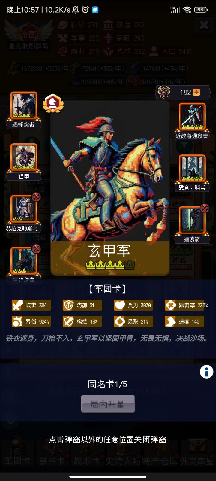 我感觉这游戏难度偏大,我只能玩到100到135左右,我是零氪玩家,我用领的钻石买了秦铁骑和圣殿骑士,圣殿骑士现在两星,打到100年以后就比较吃力了。