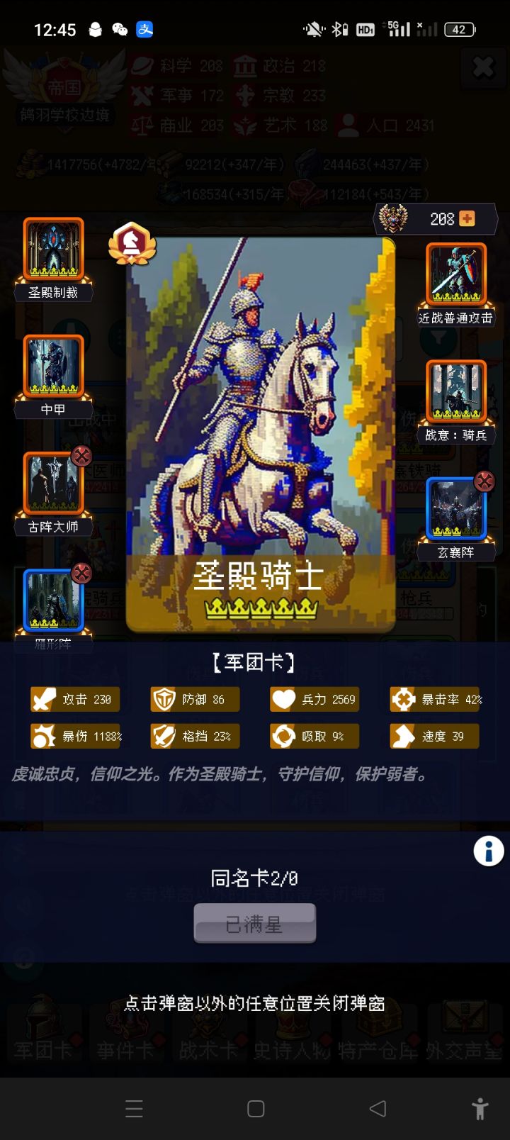 没有商务教育根本打不过。胡狼破格挡是神技。步兵危机加防御,然后配两个手术医生加血。输出只用圣殿骑士+古阵大师,一旦暴击伤害爆炸