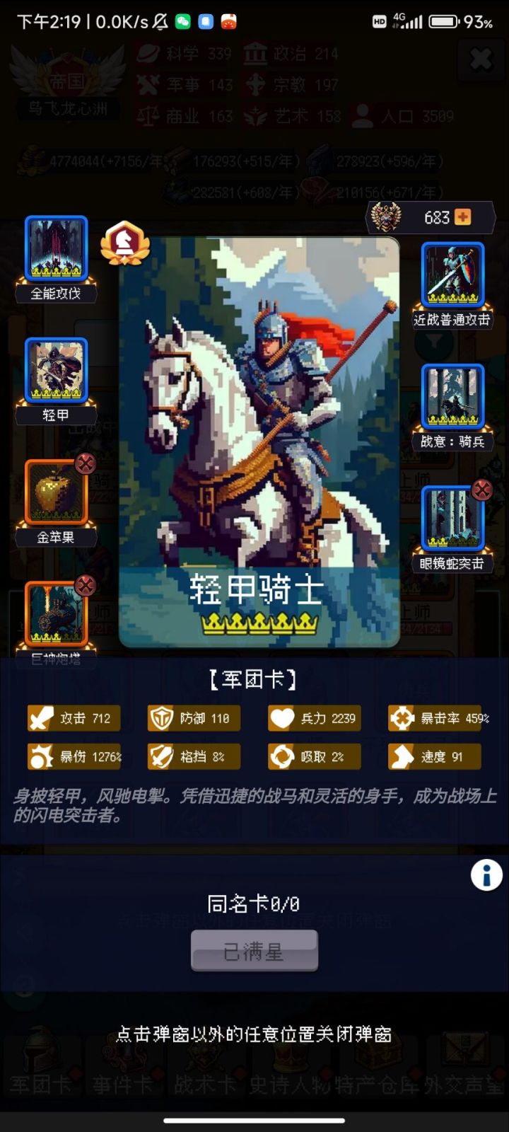 肝到满星轻甲骑兵基本就能打过300了,有诸葛亮刷军工爵,所罗门,荣冠,随便过999,所罗门又能刷女武神出来,玄甲,氪个魏国包拿双军工爵稳过,再加上希腊包的柏拉图就更不用说了,所以趁诸葛亮能拿。不过我没试过没开国家包能不能随机到那些政策,理论上是可以的,我玛雅包没开也能随机到那边的政策。没到8级论坛的建议快点氵,最少要拿个拉的烈焰也是t1的战术卡。还有钻石买个赫拉克拉斯的战术卡,所以说这游戏废肝是这