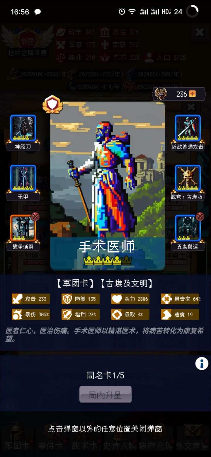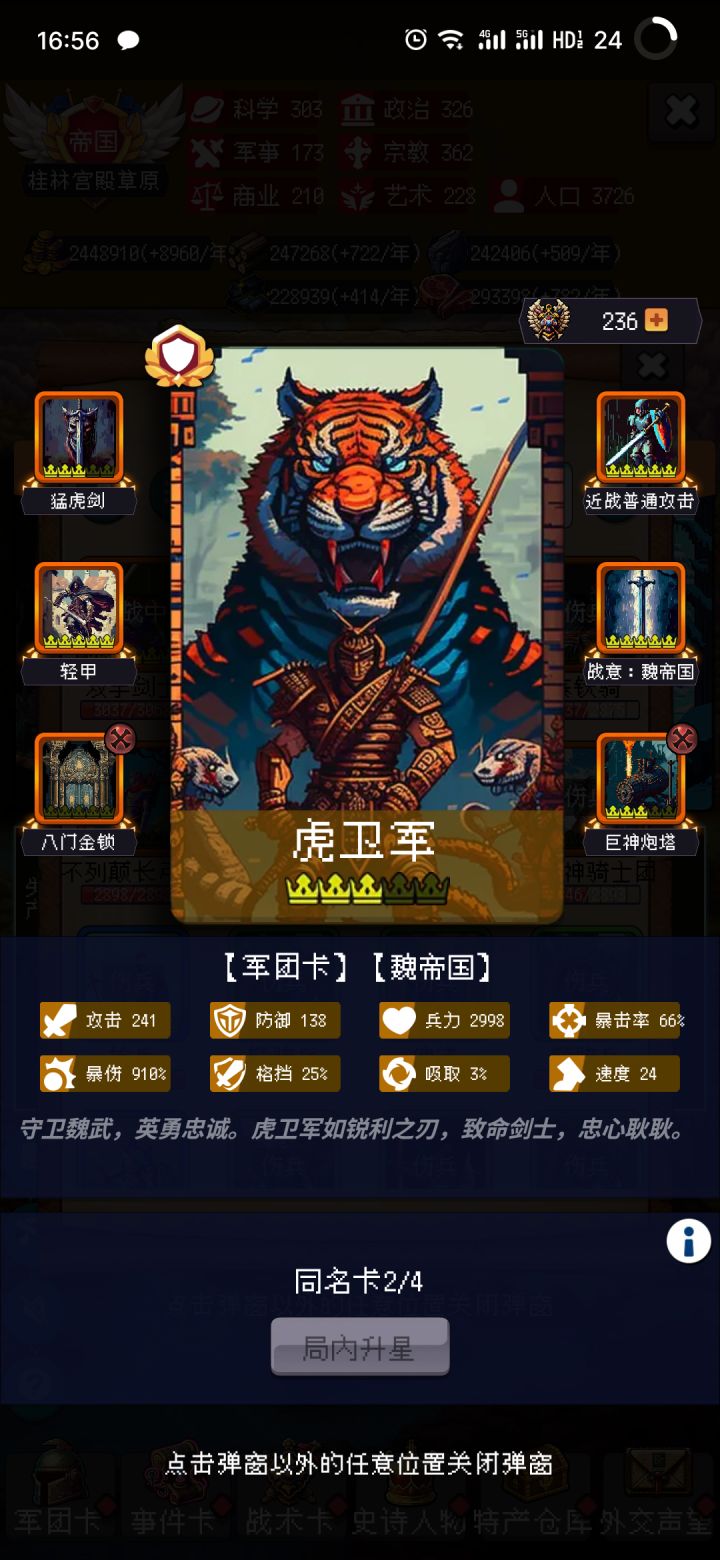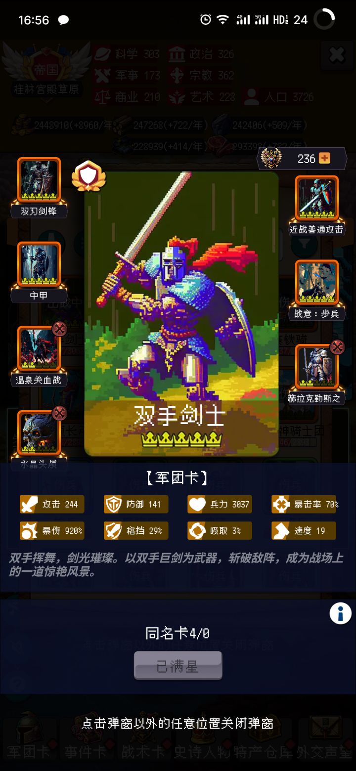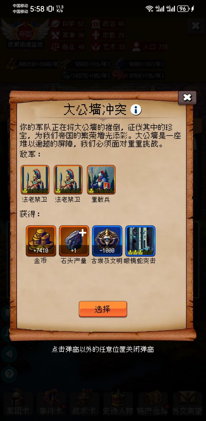 首先这把没有胡,没有抓到所罗门也没有其他强力军团卡,但是真的打得很顺,只要政策到位了都好办,没有耐心一直SL开局的可以看看,尤其是后面写的运营零氪想要舒服的通关可能还是有点痛苦,我是氪了两个卡包和一个奶骑(奶骑yyds)一百左右准确来说其实是400关之后都是重复的,只要能撑过400就无所谓了,推荐用骑兵,打的快还顺畅,步兵太慢还容易翻车,分享一点点心得吧1 政策必拿:远交近攻⭐️⭐️⭐️