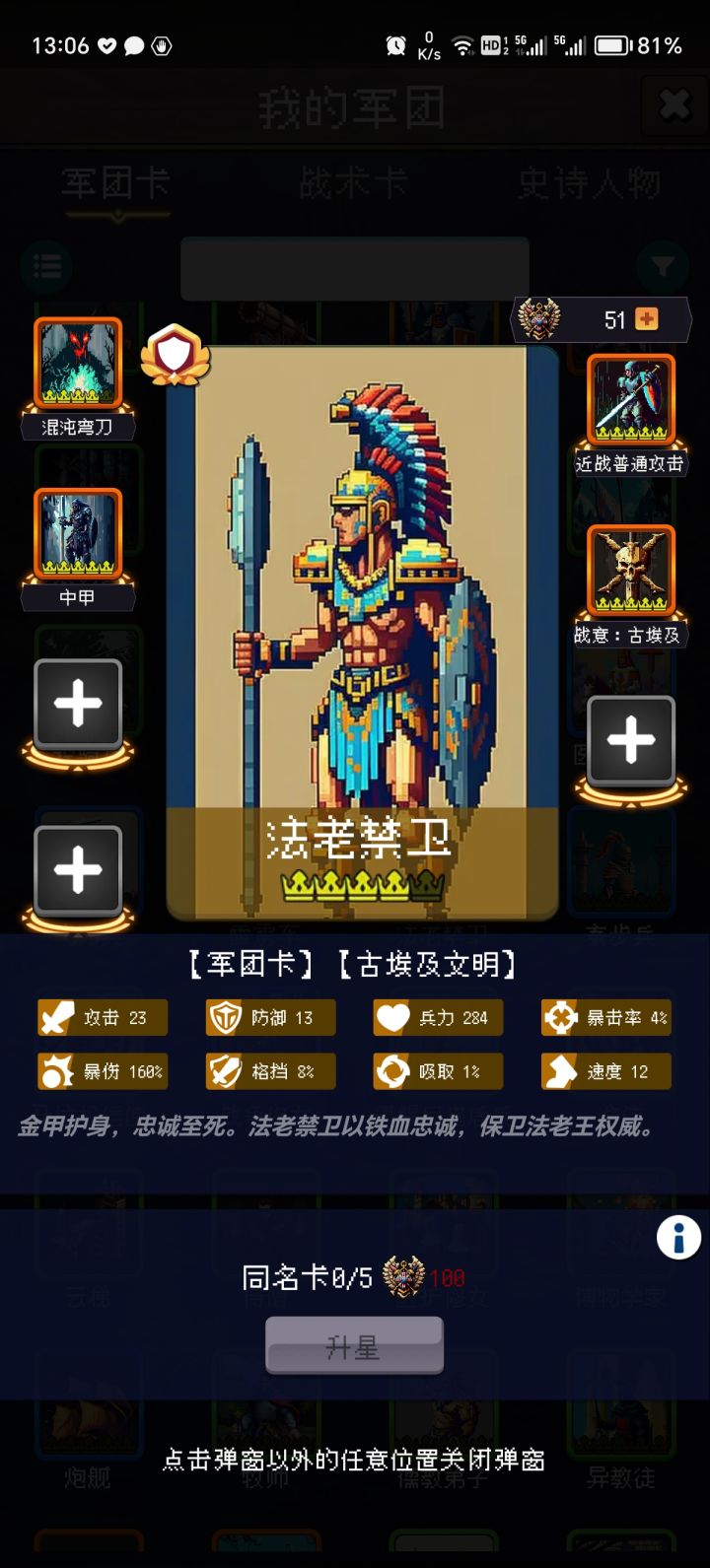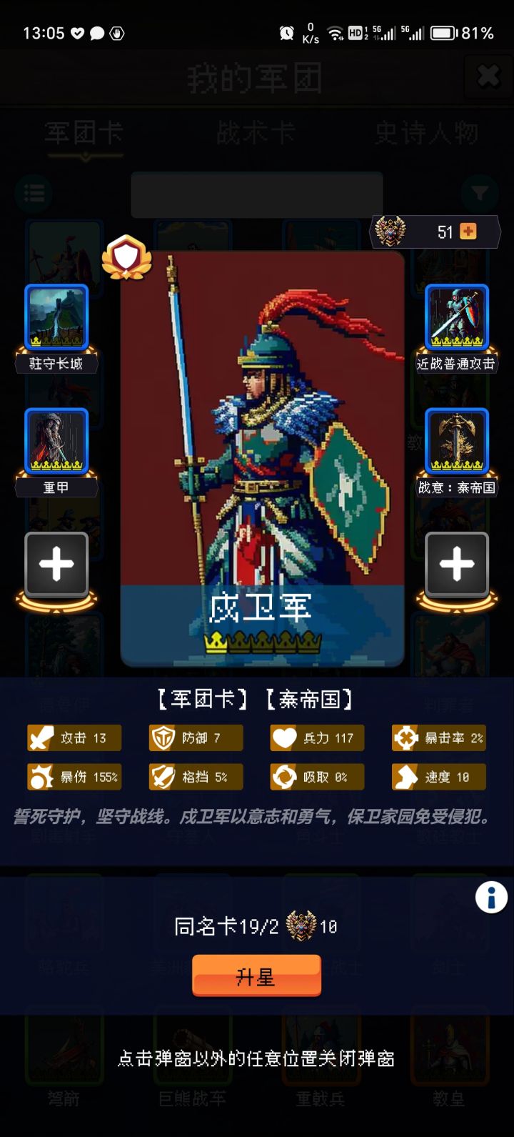 步兵卡,非常好用,主要步兵现在还能刷出虎卫军,配合几个普攻触发的卡,yyds