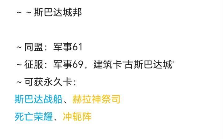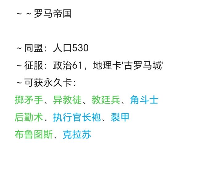 写在最开始,让大家一饱眼福。后面有隐藏内容~~~目前还不知道有哪些卡可以刷;还不知道有哪些政策是特有的;但会持续更新的~~~所有的、可以刷的、波斯的、”永久卡“也会同步到我的以下攻略中一、2张橙色军团【长生军】如果技能是战斗内出发,那基本上不会死了啊。带满伤害战术就可以了。【波斯战象】贸yi站可获得,第一次出现的兵力百分比伤害,345兵力的30%可以造成103.5点伤害,如果只看攻