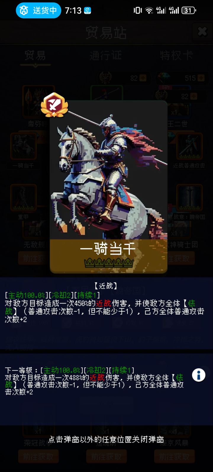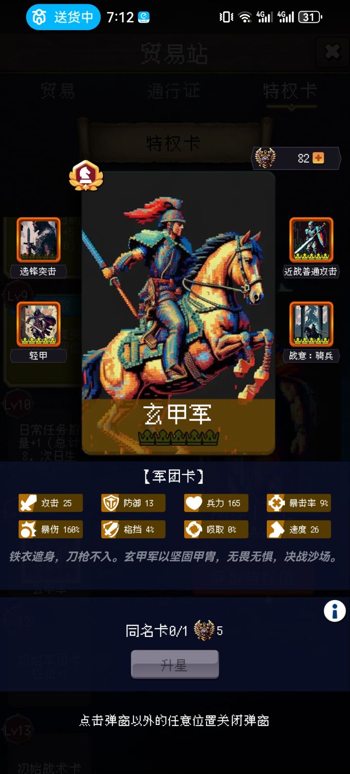 这个游戏打发时间不错,慢慢玩也行,如果各位考虑氪金,可以参考下个人建议微氪,卡包就开个魏国或者斯巴达啥的,玛雅看个人需要玩骑兵可以考虑氪女武神一只,骑兵回血,强度也有,性价比较高,目前贸易站没刷出来过,看了看其他帖子应该氪金限定玄甲当之无愧的t0,其次虎豹,氪金出圣殿,秦铁骑啥的比较好用的骑兵贸易站出氪多点想体验好,骑兵回血多氪女武神人物方面:白得卧龙,但是得八级tap,姬发能去掉d