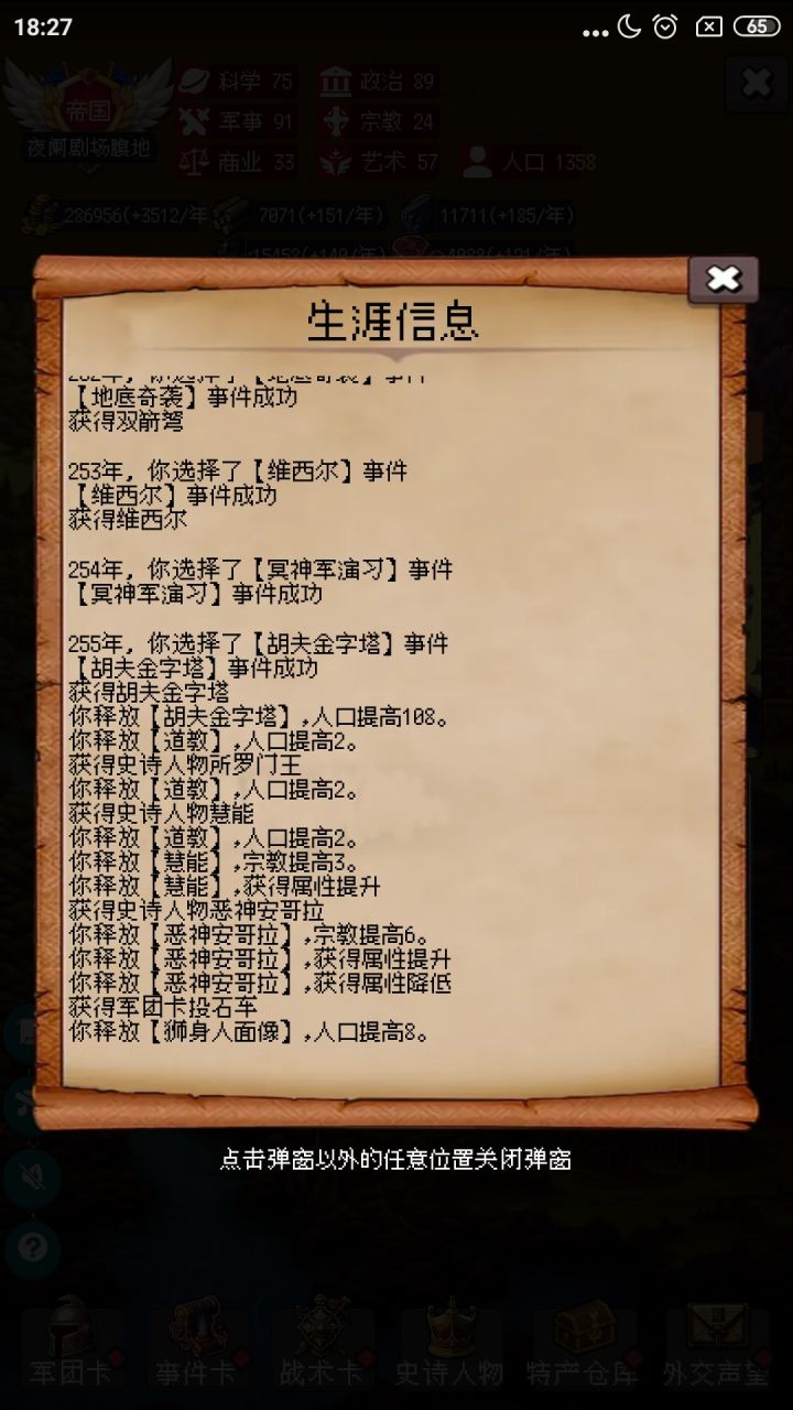 一、写在最开头,这是一个挺不错的游戏~~~1、【先玩几把】感受一下游戏的主题。后续很多功能(比如任务、史书、贸易战等)都需要达到一定年份后才能解锁。具体多少忘记了,你应该可以看到。所以,先来几把,有啥用啥,先推一推。2、【任务】当你经历了几轮,熟悉了大概的操作,估计也开通的任务、史书、贸易战的功能。优先完成每日任务、有啥成就、新手任务都完成了,可以领取一大波【荣耀】和【钻石】。而且会有很多赠送