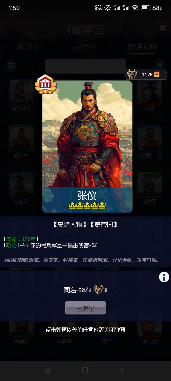 建议加一个历史的熔炉,把多的人物卡放进去,置换同时期的人物也好,甚至是研磨碎了,做成英雄碎片也行,等凑够了一定的碎片合成人物。相信能提高一定的可玩性。