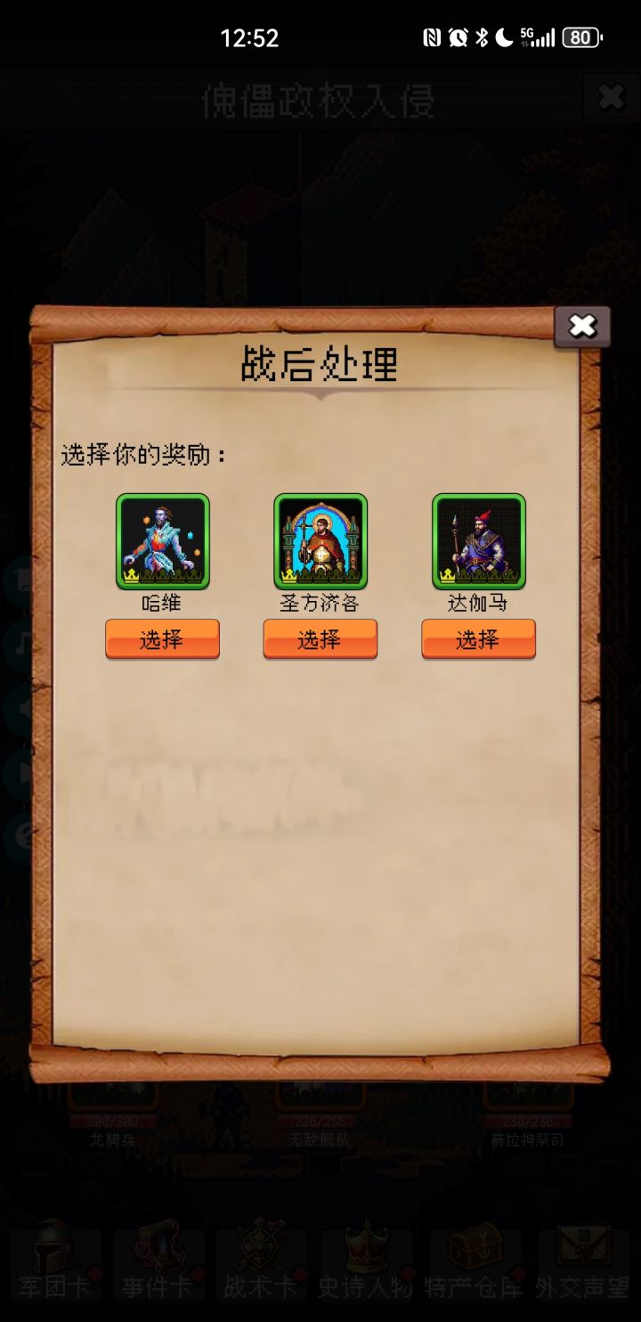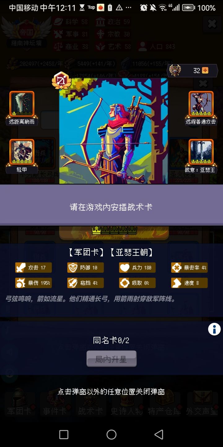 战斗的时候退出了,再进去以后军团卡没法装战术卡,攻击什么的也享受不了史诗人物加成了,没生效的史诗人物也没有启用的按钮了