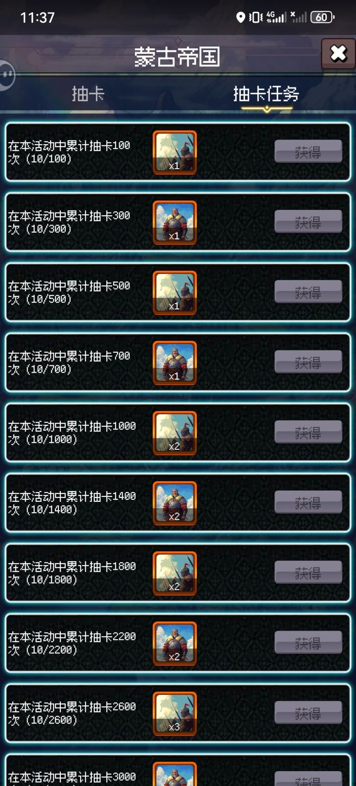抽了110抽 速不台保底 结果任务只显示抽了10次