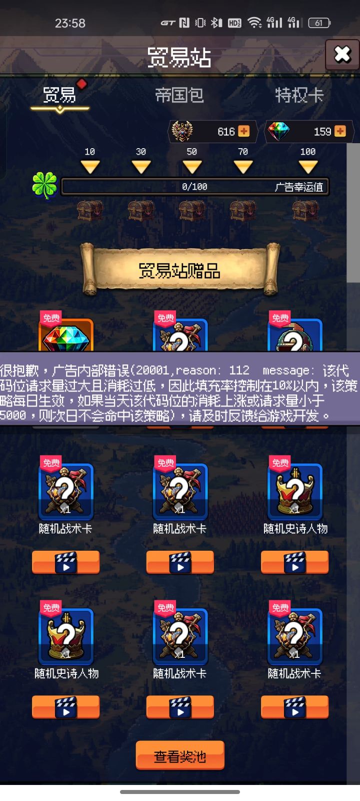 咋回事啊咋回事啊,玩不了啦?账号好像被删了,还有这几天广告拿免费福利都拿不到了,看不了广告#游戏讨论#单机游戏#游戏杂谈