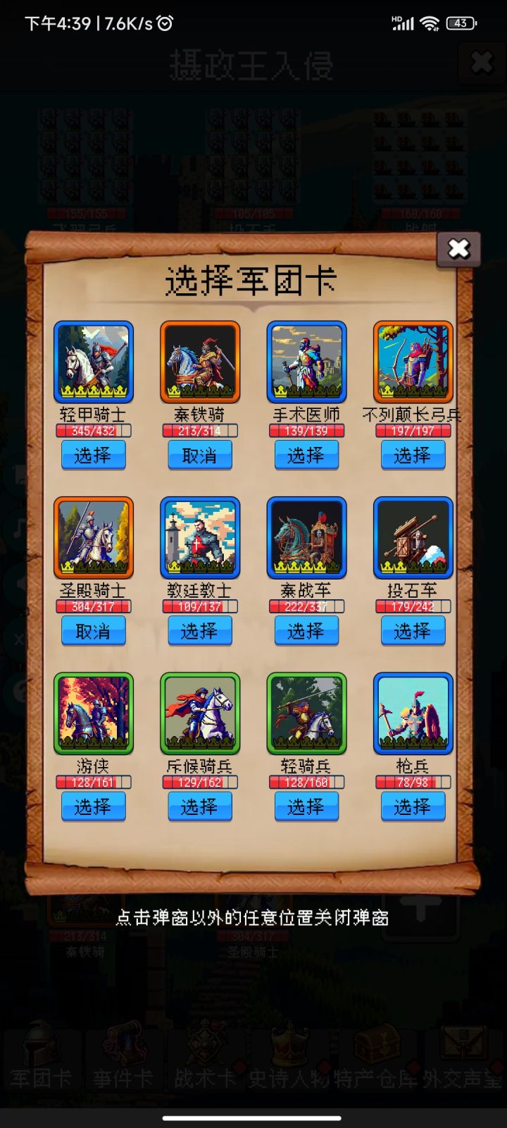 能不能在战斗时的选择兵种,加一个筛选,后期军团卡太多了