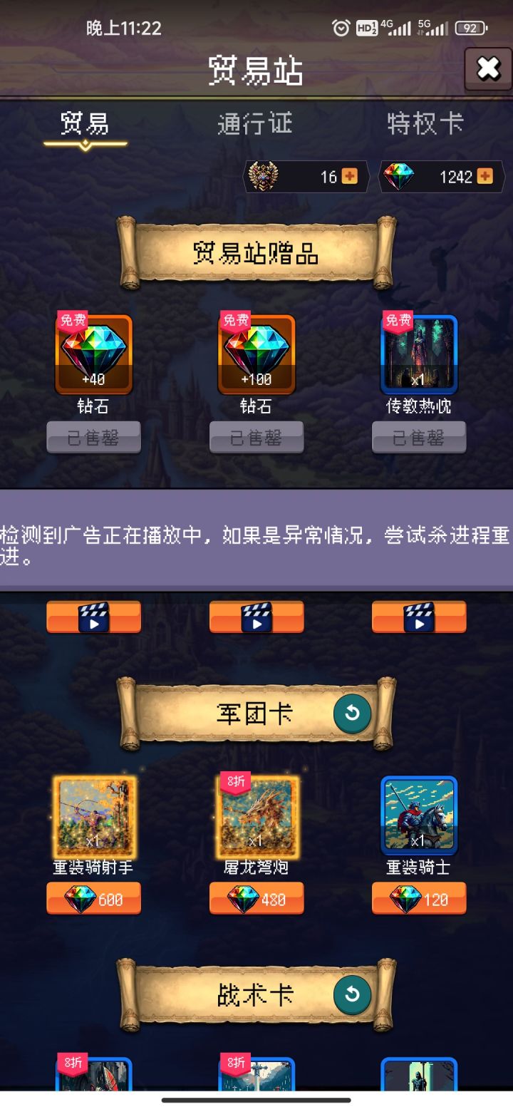 就差个摩西就是不让看广告了,另外建议一下,在游戏内打军团的时候,总是莫名其妙的扣血,明明先手收掉对手对面没有伤害,结果结算时还扣血