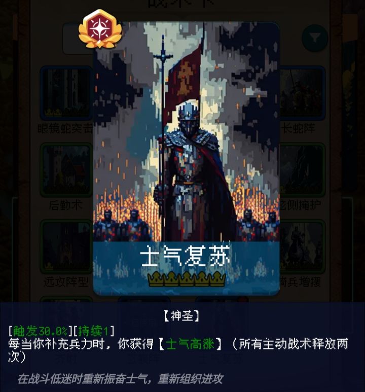 🏀前言:以下言论仅作者一家之言,如有不妥之处,望各位在评论区不吝赐教。如有好用的疏漏望发出的蓝色军团卡,也可请各位在评论区留言。这边会实时更改本篇攻略,并注明借荐作者来源。或者各位有更好的见解战术卡评论也可发评论区,这边会补充,注明来源。一一一一一一一一一一一一一一一一一一一一T0战术卡 以逸待劳,胡狼围攻,眼镜蛇突击T1战术卡 后军压阵,士气复苏,佯攻,机动方阵,五鬼搬运T2战术卡 士气