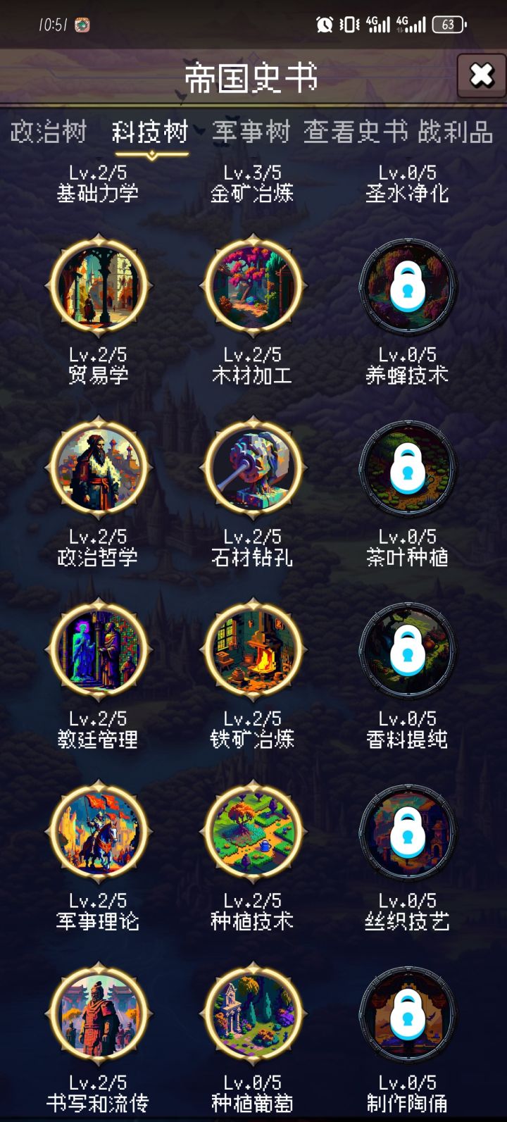 经过我艰难的摸索,总算是打通关啦!帝国存活到了第999年,也算是有一点点小小的骄傲(bushi看到社区很多小伙伴都在找通关的攻略,于是我就想试着分享一丢丢我的心得,希望能对大家有所帮助~还望各位观众老爷给俺点个赞发个评论(求求了🥺!好了咱废话不多说,直接进入主题。(本文基本涵盖了通关的所有关键要素,感兴趣的小伙伴一定要耐心仔细阅读哦第一个要素:史书(即本游戏的天赋,点了天赋点后开局自动生效