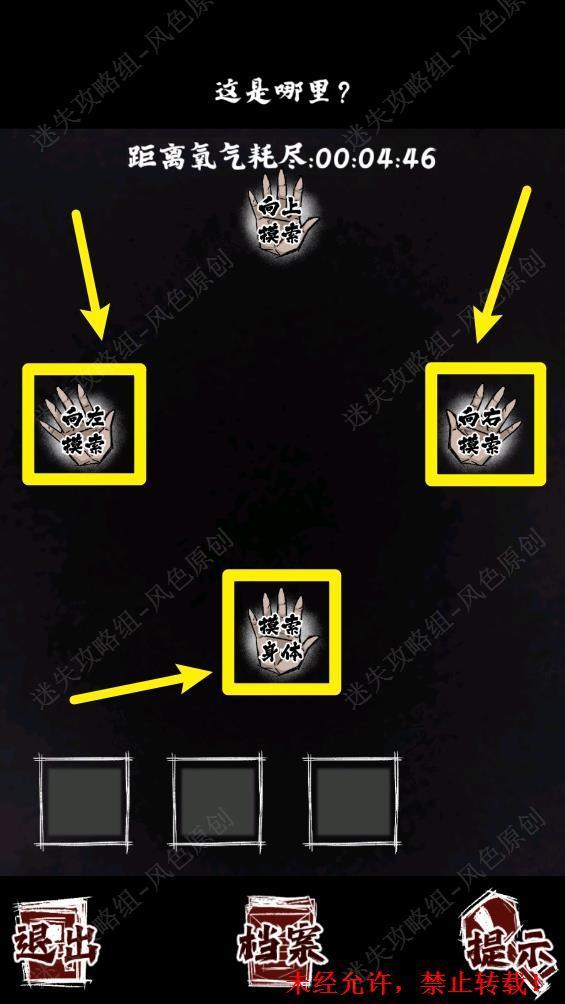 攻略作者:迷失攻略组-风色未经许可,禁止转载,侵权必究!💡更多图文+视频攻略可搜公众号🔎迷失攻略组(也是第一时间放攻略的地方(^U^)ノ第八关攻略71.结局1【惊险魔术】:点击【向左摸索】,【向右摸索】一次,【摸索身体】两次。 7172.点击第一个道具,照亮棺材。 7273.点击第二个道具,并且点击放大观察,注意查看数字线索。 73 73.174.点击第三个道具。 7475.手机