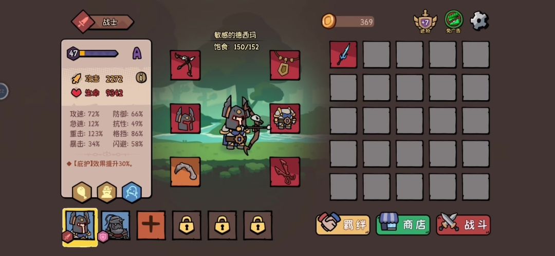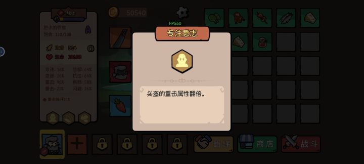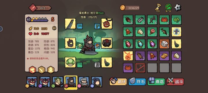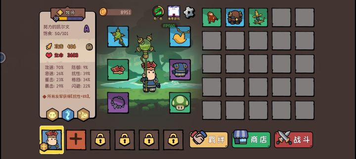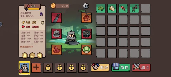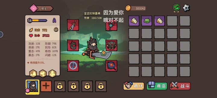 开局刷好的初始角色,重击血量为佳,然后装备主要血斩,其他随意,宝物有蘑菇就行,开局可以不升装备先把装备D的差不多了再升级商店。一般达到45关或者50关之前,只有一个或两个主c,打到最后几关,再买人口凑羁绊。#游戏种草计划#攻略