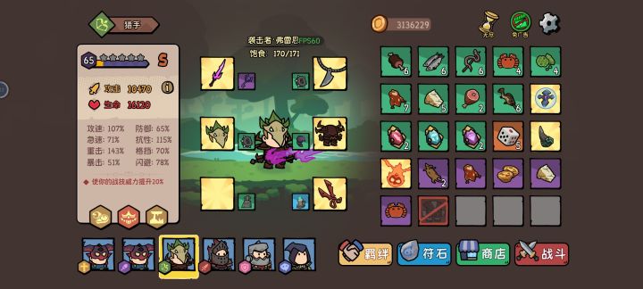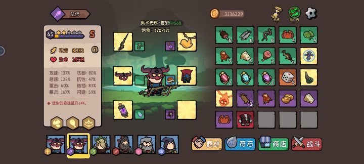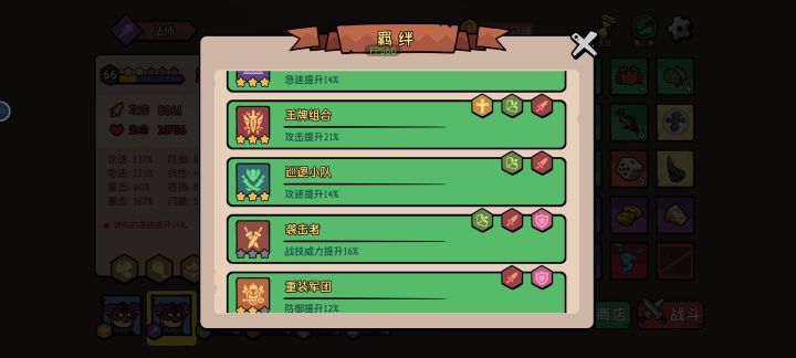 40关后基本上互秒,群攻技能前期弱的一批,后期敌人队伍满8人了就超模了。 流血和燃烧见效太慢不适合打后期,角色特长给整个队伍提升属性的最优。 防御属性不可能做到面面俱到,堆一半放弃一半拼概率也不失为一种策略,毕竟失败还有一次选敌的机会,同理攻击属性。 净化和驱散在大后期挺有用的,队伍里至少要留一两个人专门负责辅助。 c位人选主要看觉醒属性,食物强化是最优c位属性,当然前期绿色食物可以适当卖掉加快进