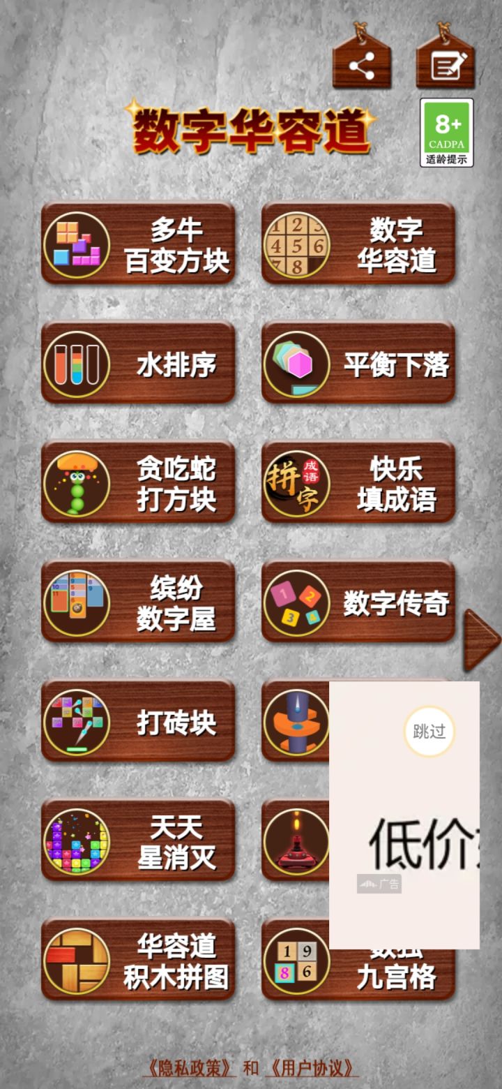 数字华容道游戏好像和名副其实的华容道不太一样,华容道比较考验脑力,像这个数字华容道游戏还挺简单的,没什么挑战性。但是无聊的时候可以玩一玩。还有就是广告比较烦。