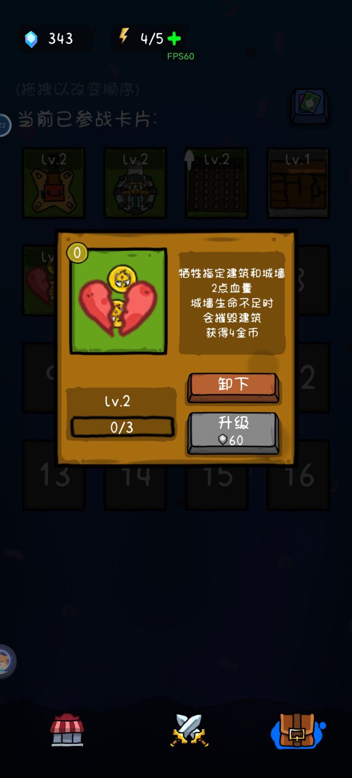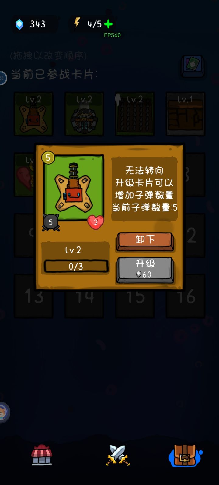 第一个无法转向的炮台原来只需要4金币就可以购买目前要五金币,关卡前期性价比低了;炮台两级时是8点伤害,目前改为5点,不确定炮台一级是几点伤害,好 这些为了平衡无所谓了。但是!!第二个卡牌,原来是可以选择扣除基地血量或者建筑血量获得金币的,现在改成了一起扣,基地没有足够的血量可以扣时就会直接摧毁建筑,性价比大幅度降低,上一个版本的时候一个城墙卡牌(三金币)可以用五次至少,一次4金币,现在使用一次之后