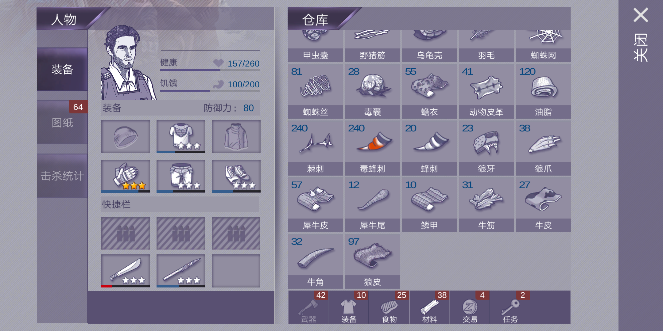 纪念一下,第一百三十六天通关的手残党去打骨弓之前存了毒铁箭和火铁剑各一百多吧(手残党嘛,自然要准备多一点),结果发现了一个无伤打法,只用了毒铁箭就搞定了,好像六十发不到吧。打变异队友用火铁箭比较好,毕竟不小心射到爆炸甲虫也不会立刻爆掉。最后的蝗虫组织全用的子弹,用散弹枪很舒服,但我用的步枪(叛军营地拿的),基本无伤。最后这个......真的太手残了,打了五六次,可以看见这次也是常常在死亡的