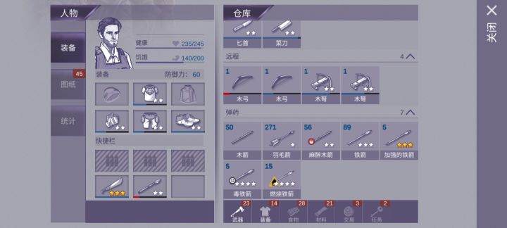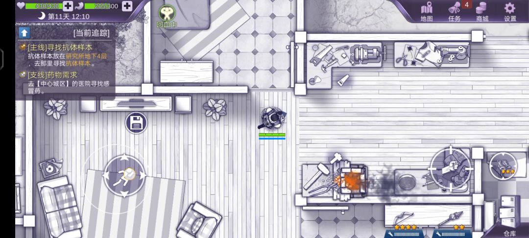 阿瑞斯病毒要想在庇护所回血,首先要点击饥饿度后面的【+】,接下来任意选择一样食物进行食用;或者点击右下角【仓库】进入,在食物栏选择食物点击【食用】。当饥饿度达到一定值时,人物就会进入到回血状态,每过一段时间,人物血量都会以+10的量增长。阿瑞斯病毒饥饿值与回血技巧:饥饿值在160以上时,会出现体力充沛BUFF(周期回血、加快体力恢复速度)。所以不管什么时候,尽量保证饥饿值在160以上(出门携带