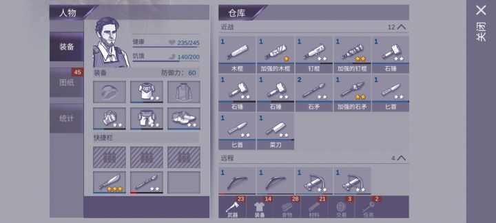 在前期很多普通小伙伴都会拿钉子来做钉棍使用。如果到了郊区之后,可以用钉子去换其它的东西了。阿瑞斯病毒钉子在村子中NPC上面有一个类似于修理间的物资,这里的物资就可以买阿瑞斯病毒钉子。买钉子最主要的是野猪牙。在游戏当中野猪不会主动进攻,因为野猪动进攻就会有掉落物,野猪的掉落物是非常有用的。野猪的掉落物可以做武器,也可以做防具,所以在玩游戏的时候都会通过策略让野猪主动进攻,只要野猪进攻就会有掉落物,