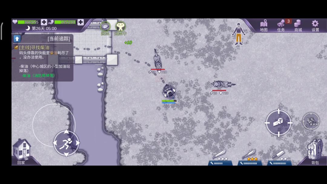 这个方法很简单(这里我这视频里面有点失误,但问题不大),加强砍刀是可以免费获取的,可百度这里就不说了,然后两刀普通砍刀造成416的伤害,加强的砍刀一刀刚好可以收掉284的狼,这里可以吃菠菜炒牛肉也可以不用吃,但新手掌握不好狼回血的时间,狼被砍第一刀后就会恢复血量,(所以加60伤害,如果狼第一刀就回血的话第三刀下去过后应该还剩80左右的血量,就可以用砍刀收尾,追击残血狼的时候不要蓄力蓄满,不然打不到残血狼。当然后期熟练了就不需要菠菜牛肉,直接3刀,这样武器消耗就很少。当然狼的材料都知道,狼牙做武器,狼皮做防具,狼爪20个可以去郊区兑换毒箭,所以还不快操做起来。