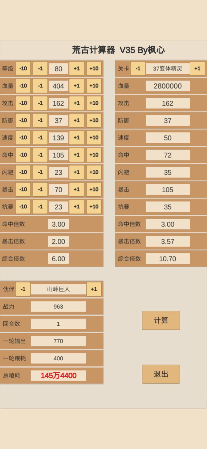 解锁炼金后,装备里面升级闪避(鞋)、抗暴(帽)、防御(衣)的三件不用管,属性不要超过35,防御之前要是超了也就超了多费一点点粮食。暴击70,命中105,这样正好是对面的两倍三倍这样有输出。多余的属性点给速度和攻击来提升输出;去掉血量,属性战力在550左右打粮食能省一点。再低也能打。高了更好。