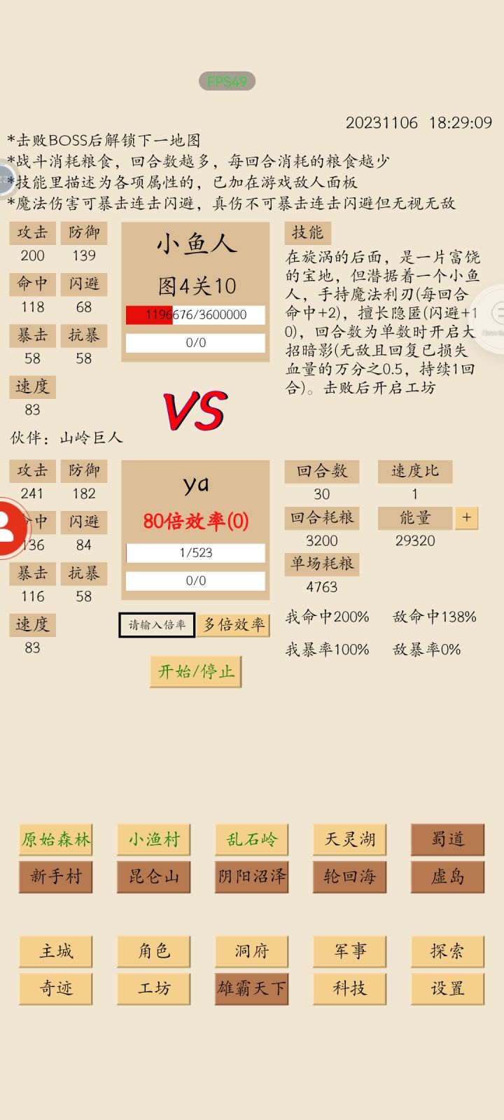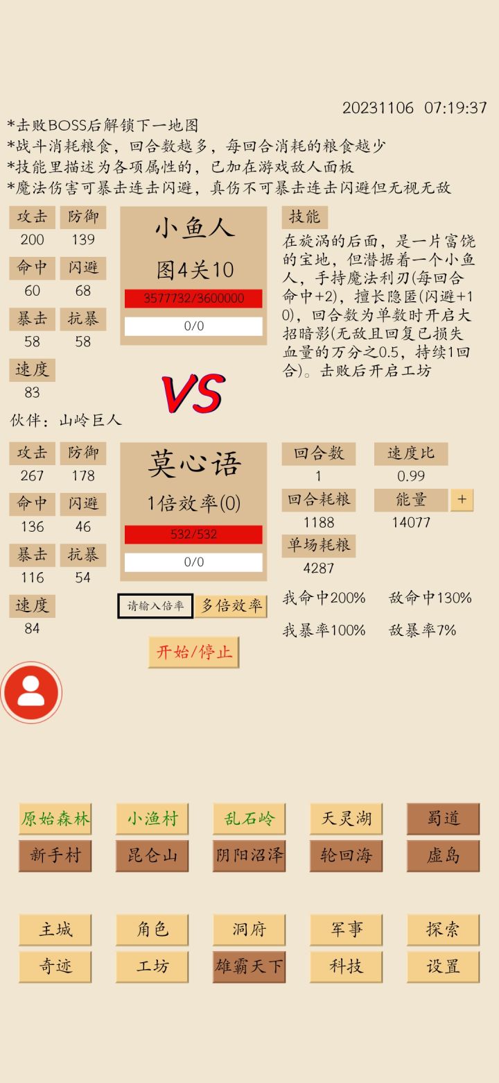 打了两天多全程消耗粮食超过四千万,因为是卡级玩不升级所以也没心疼。算是打鱼人属性最低标准了,再低消耗粮食要攒太久更不划算了。图5是正常建议属性打鱼人。