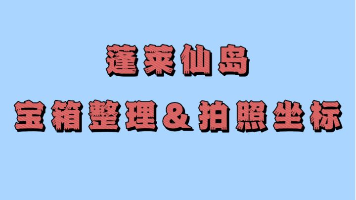 ●本攻略中为大家提供两种寻找宝箱的方式○第一种方式,根据提供的宝箱名称,此名称与游戏界面内宝箱显示的排序是一致的,可放心根据顺序寻找;○另一种,为大家提供图片,根据小地图上的宝箱位置,查看自己漏掉的宝箱,并且获得大概位置。蓬莱仙岛一共31个箱子▶一、根据宝箱名称(注意:非游戏内排序★)二、下图中,灰色宝箱图标为宝箱大概位置——————————以下为蓬莱仙岛拍照坐标●蓬莱仙岛拍照点墨