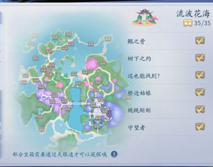 #仙遇 #仙遇攻略 ●本攻略中为大家提供两种寻找宝箱的方式○第一种方式,根据提供的宝箱名称,此名称与游戏界面内宝箱显示的排序是一致的,可放心根据顺序寻找;○另一种,为大家提供图片,根据小地图上的宝箱位置,查看自己漏掉的宝箱,并且获得大概位置。流波花海一共35个宝箱一、根据宝箱名称——查漏补缺1、鲸之骨:371,10722、树下之约:483,12053、这也能找到:765,1394(