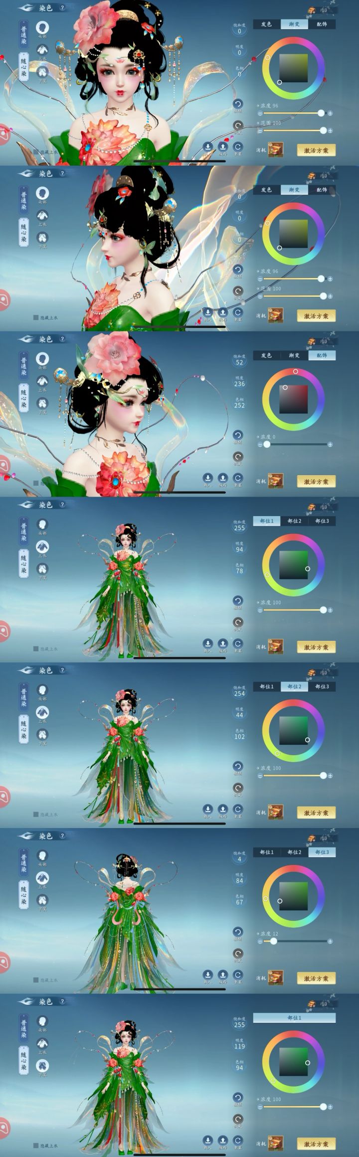 仙遇联动长安荔枝限定时装【江山美人】套装染色数据1—15款染色数据 #仙遇 #仙遇时装染色攻略 #仙遇时装染色 #仙遇时装