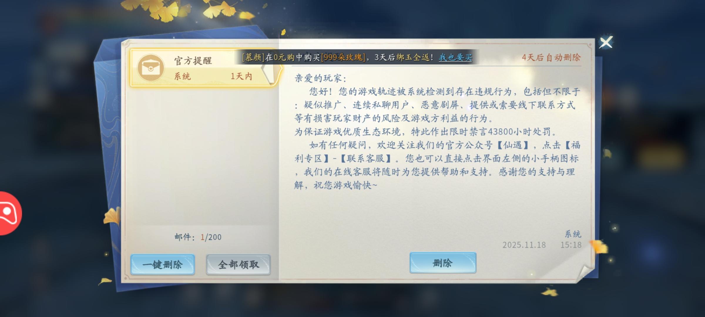 第一次玩,是和cp在老区一起,话都没说完给我下了。天天给我下三四遍。第二次回游是在新区,雷打不动,什么任务都挨着挨着肝,成了一个前中期中佬,还在和我结义的老二聊天,给我锁了。前面这两次都是能解的,因为根本没有问题,就是系统问题。第三次,在最新区。我不说了看截图,你就说是不是冤案吧关键还不止我一个,你就直接跟我说是因为我没砸钱得了。我回游是为了来看我的尸体么#仙遇 #仙遇手游 #游戏日