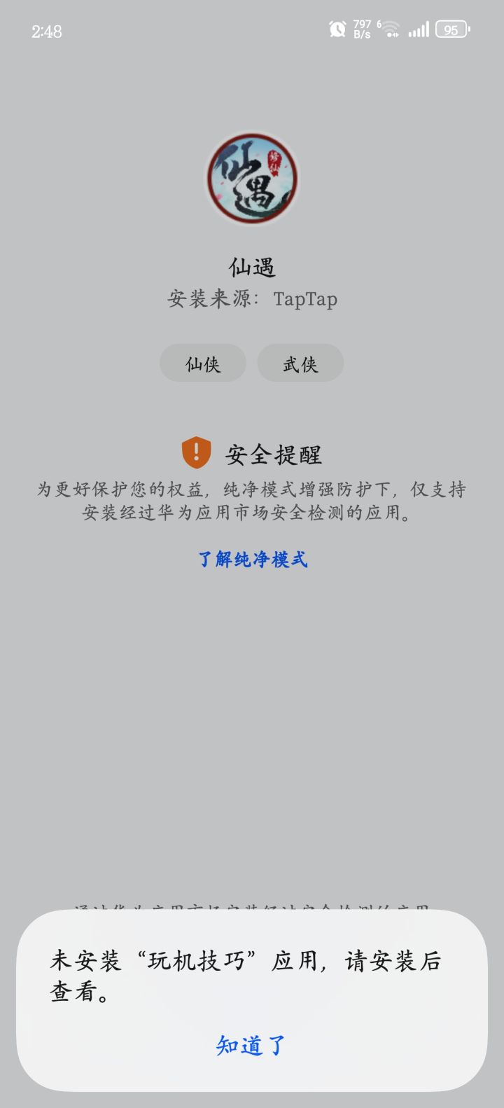 我想玩仙遇却安装不了