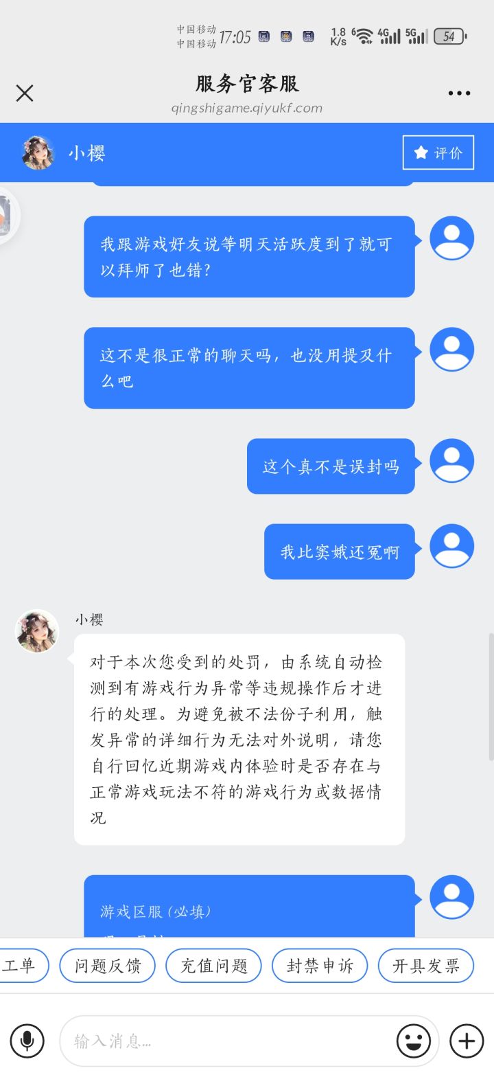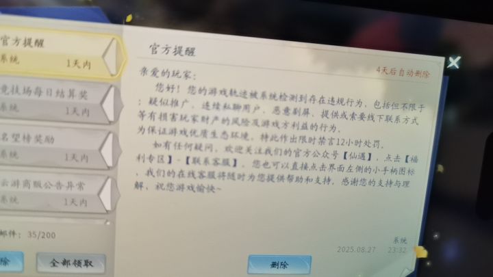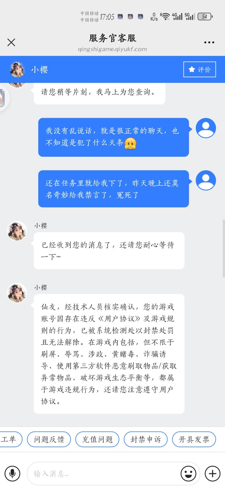 #仙遇 没有违反规定,还被禁言12小时,叫处理还不处理,破游戏,一件衣服零件还要几百块才抽出来,里面每个活动都要大千,纯纯氪金游戏,大佬们荒古资源好搞垄断,没充钱的都不配玩,反馈处理问题还要一两个工作日,其他任务还做不了,破游戏